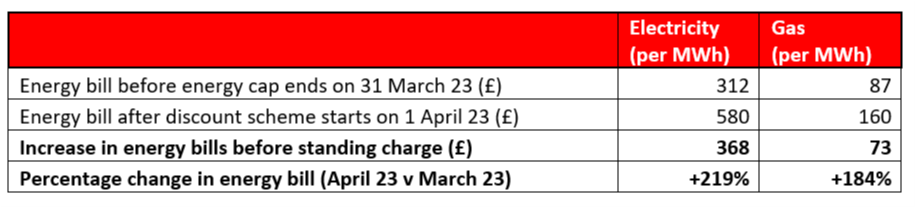 From the end of March, energy bills for commercial businesses will no longer be capped. Instead, companies will qualify for a discount on their energy bill's gas and electricity unit prices. The discount size depends on the difference between the wholesale price threshold and the contract wholesale price in the tariff.