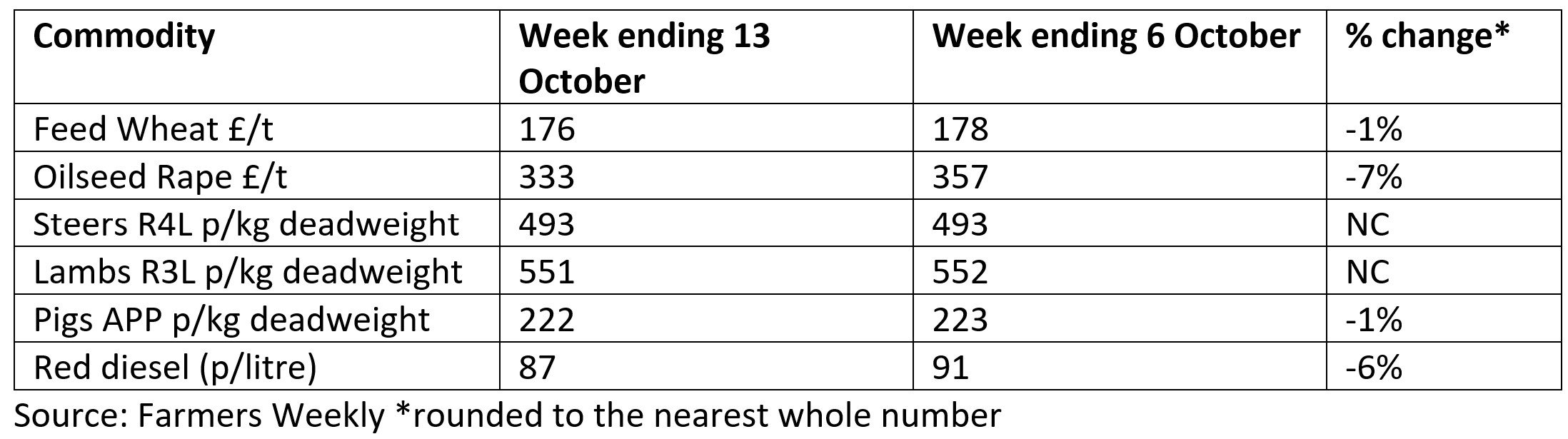 It could be a bit premature to celebrate last week’s fall in red diesel prices as crude values leapt by US$3/barrel on Friday after the US tightened its sanctions programme against Russian crude exports. This has raised supply concerns in an already tight market, with global inventories forecast to decline through the fourth quarter, according to Reuters. Oilseed rape prices, well down on the week, could also be due for a bounce after the USDA cut its forecasts for US maize and soyabean production, triggering price rises in the Chicago futures markets AS