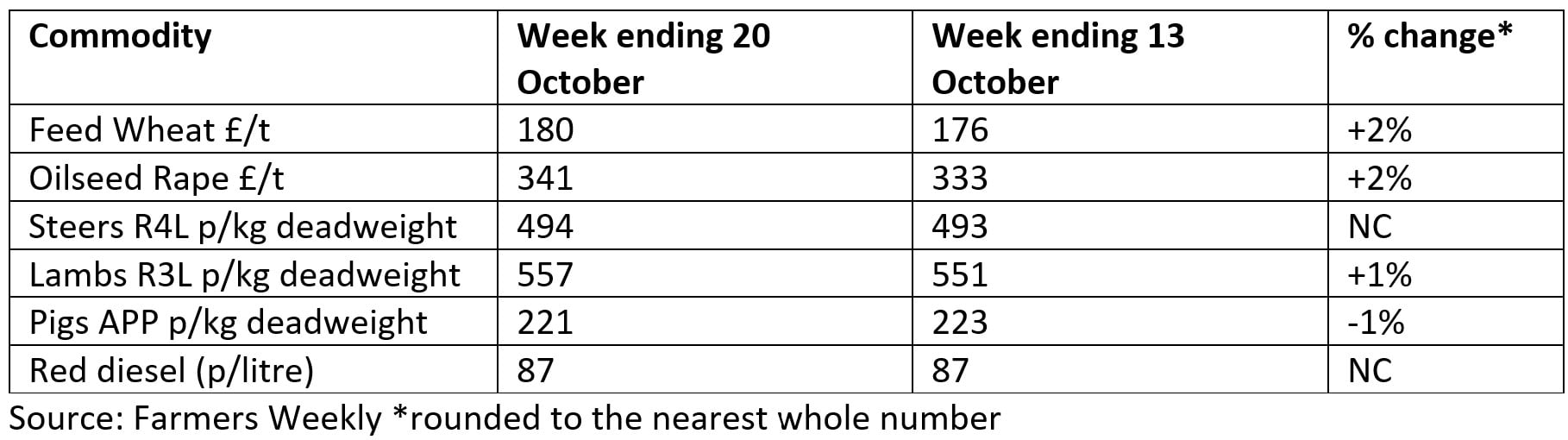 Feed wheat prices nudged back to the £180/t level last week as analysts shaved a few million tonnes off the estimated global wheat harvest. Oil markets, meanwhile, remain on a war footing with crude prices nudging up to US$93/barrel in the immediate aftermath of the bombing of a hospital in Gaza. Although the terrorist attacks by Hamas on Israel currently pose no threat to oil supplies, traders worry that any escalation of the conflict involving other Middle Eastern countries and militant groups could soon change that AS