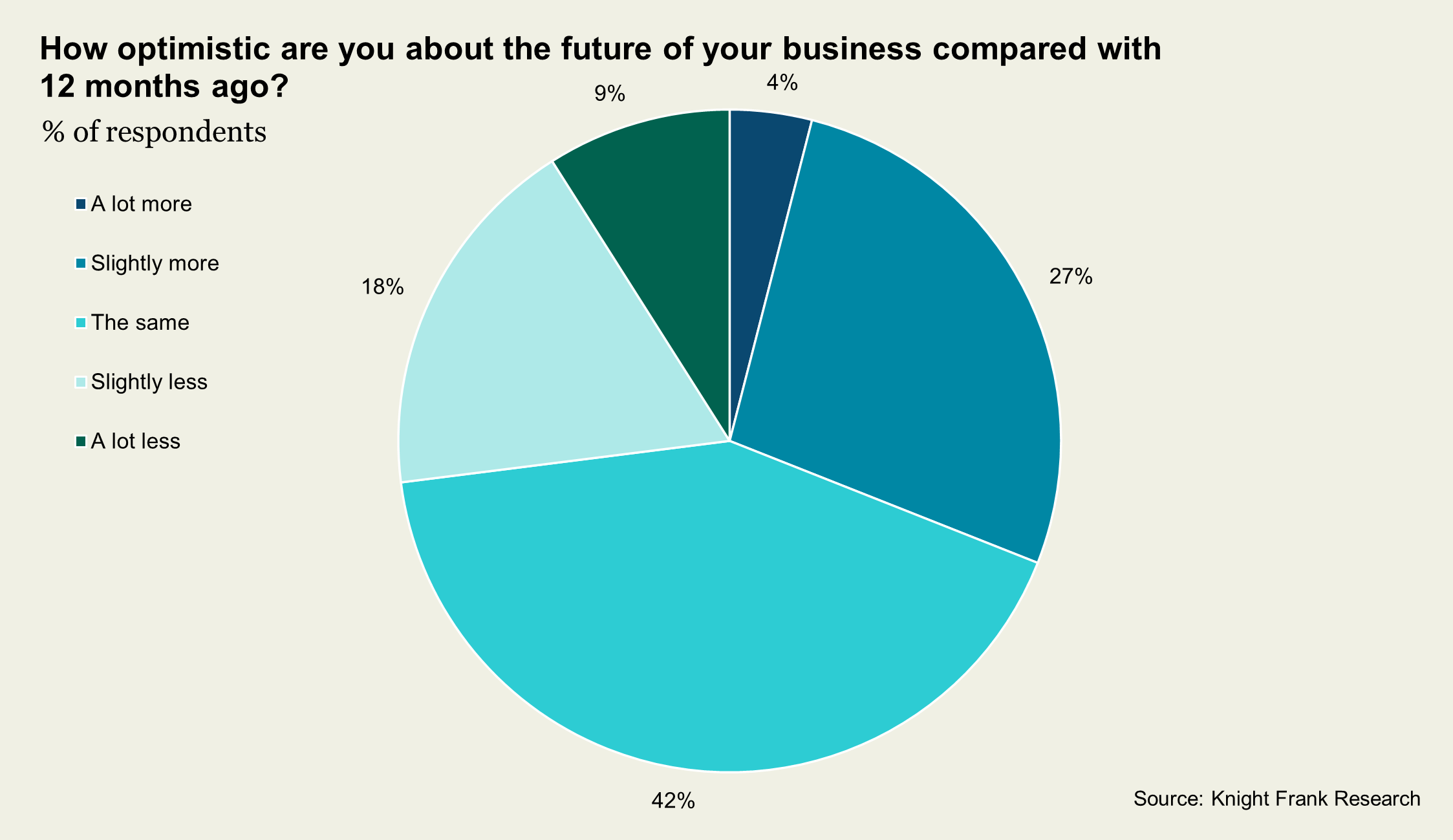 However, only 9% of respondents said they were a lot less optimistic about the future of their businesses than they were 12 months ago. “I’m a lot less optimistic because government policy appears to be so against private landownership and food producers. But just over 40% said their view hadn’t changed, while almost 27% were slightly more optimistic.