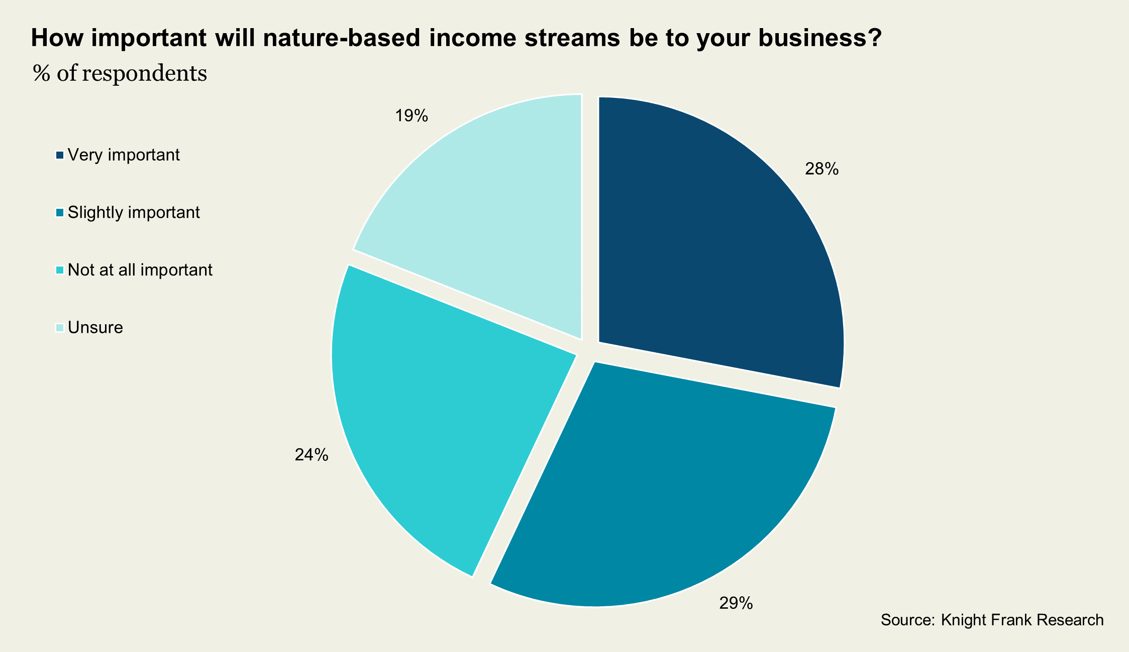 Despite the feeling the government is placing too much emphasis on the environment, well over 50% of our respondents said income streams from nature-based solutions such as carbon offsets, and biodiversity net gain would become an important part of their business.