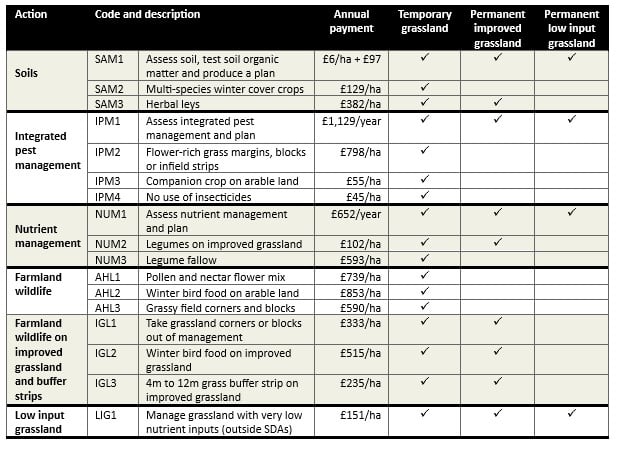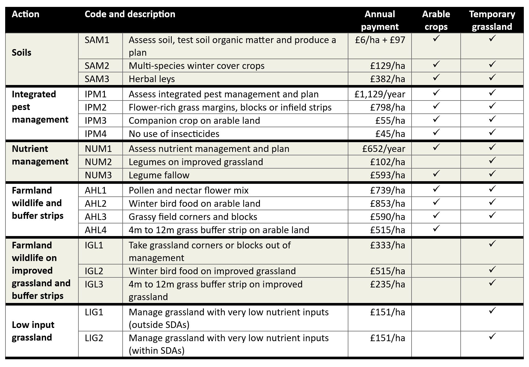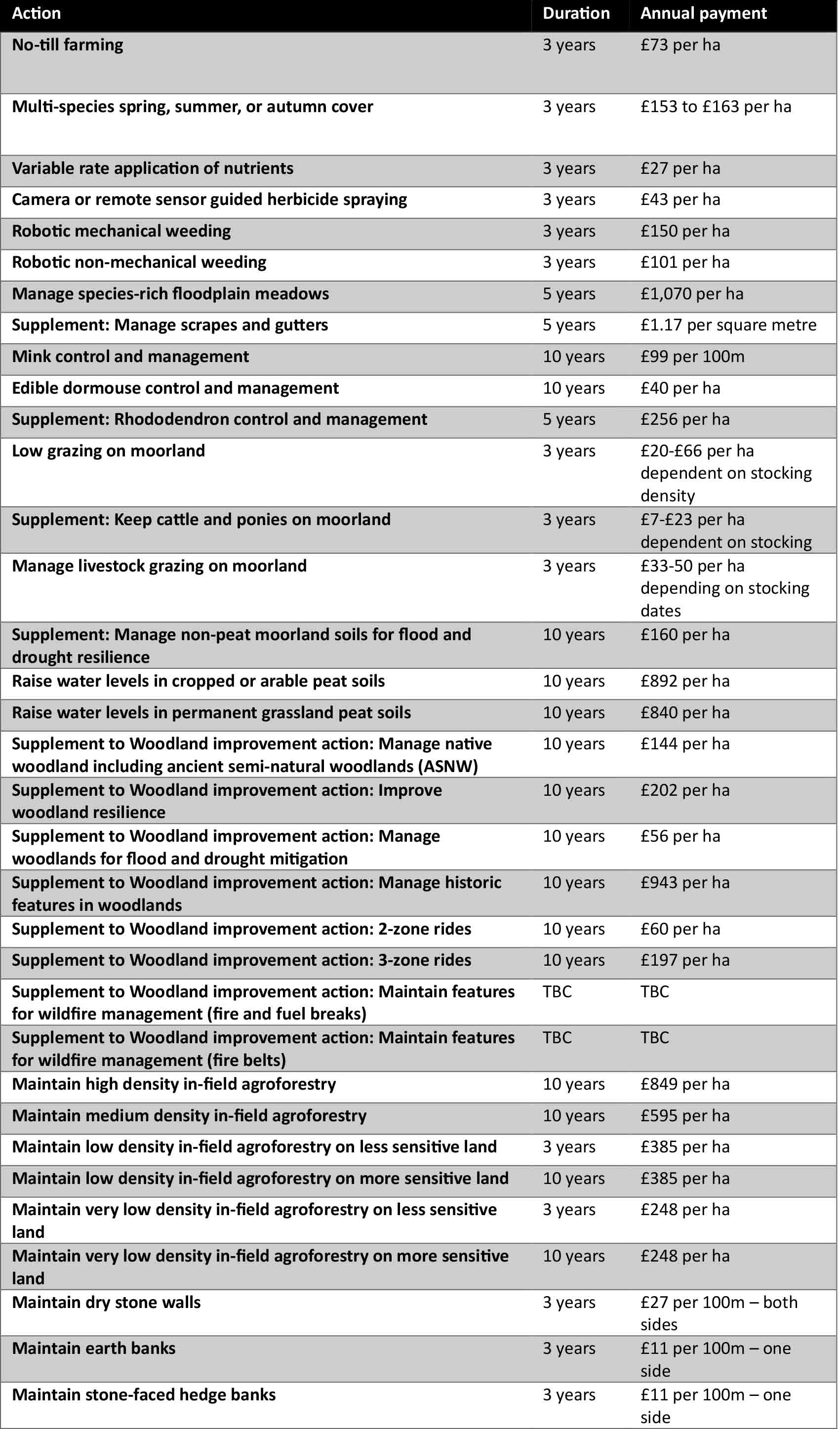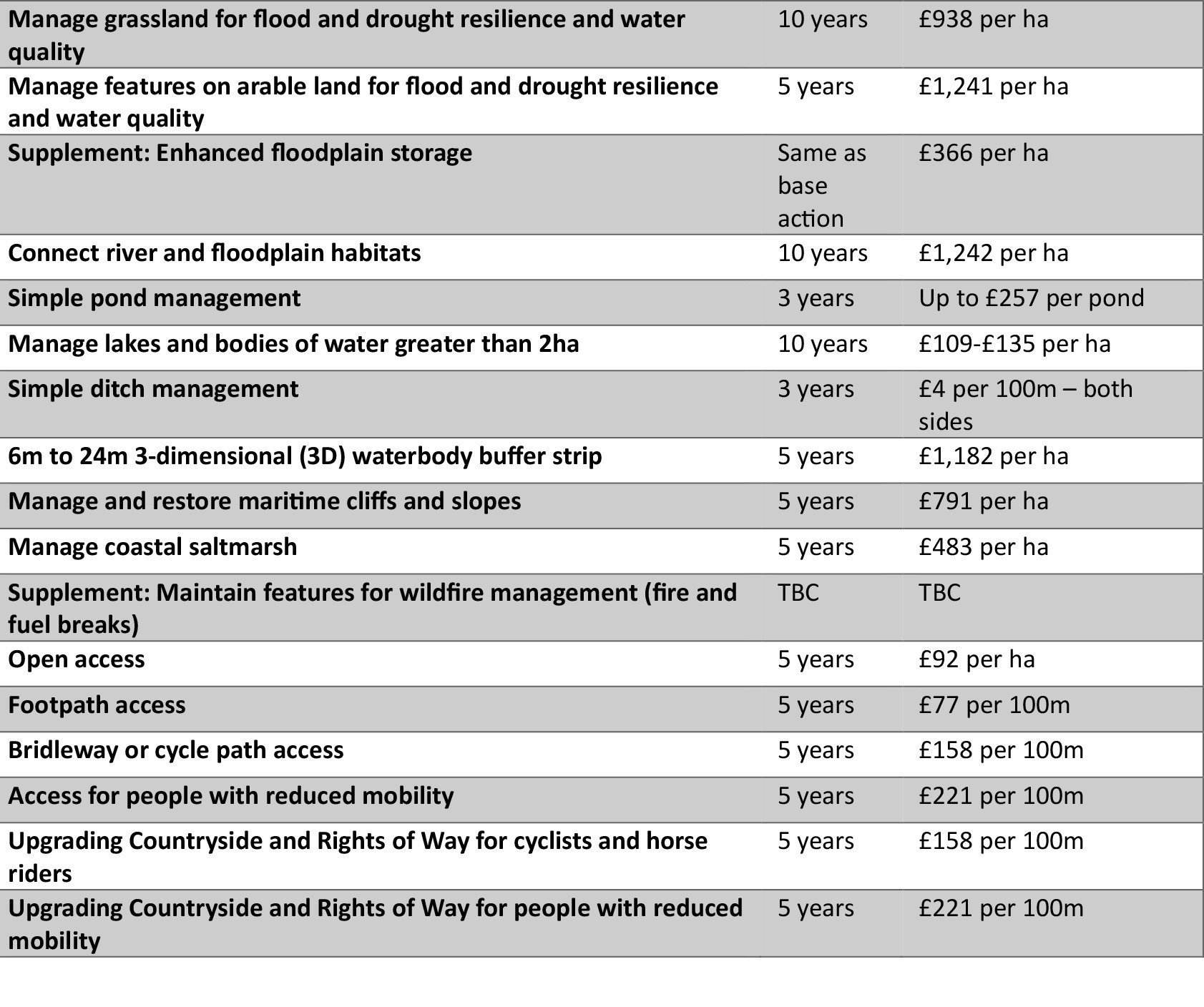 The following table is a list of the new actions that Defra announced will be available in the summer of 2024.