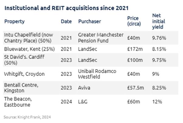Since 2021, UK institutions and REITs combined have only been the buyer of shopping centres in 6% of sales compared to 36% between 2013 and 2015. The focus of such investors is now predominantly on the top 50 assets in the UK. Such assets trade infrequently, meaning activity from this group remains limited.
