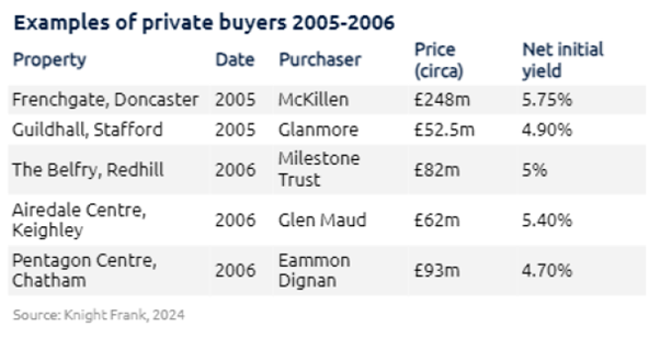 Private investors (principally Irish) and smaller property companies dominated the heady period leading up to the global financial crisis (GFC). Fuelled by readily available cheap debt from accommodating lenders, these buyers acquired nearly three-quarters of all shopping centres sold in the 2005-07 period. Generous LTVs from domestic and Irish banks drove pricing to levels unlikely to ever be seen again in the shopping centre market.