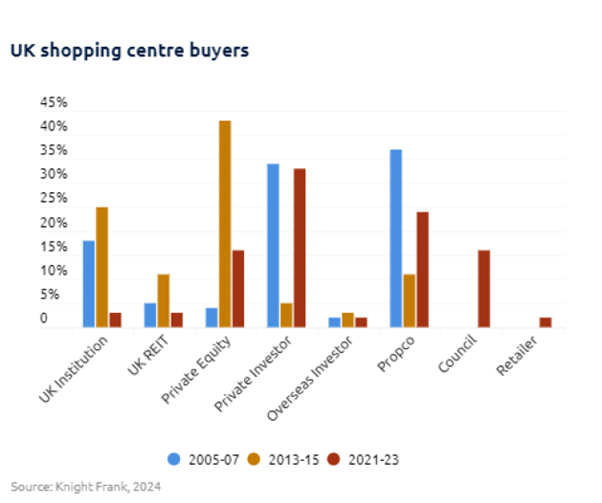 With this 80%+ fall in values from 2015-2023, those private equity owners caught a significant cold, which has been enough to put some off the sector completely since. Nonetheless, a small number of private equity investors have now started to return to re-consider shopping centres, spying the recent stabilisation in income and heavily discounted values.