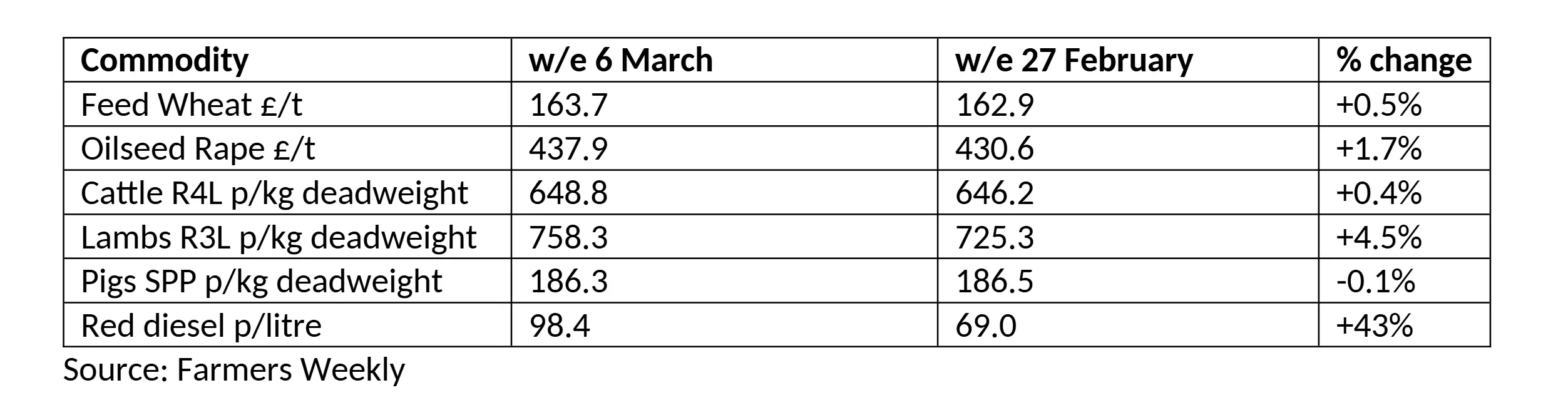 Cereal and oilseed prices also nudged up last week, with Chicago Board of Trade (CBOT) wheat futures climbing to their highest levels since July 2025 as traders worried about the implications of the Middle East crisis on shipping and production costs. Oilseed rape values are closely linked to crude oil prices, so traders expect the market to remain volatile. Futures prices hit €500/t last week for the first time in seven months.