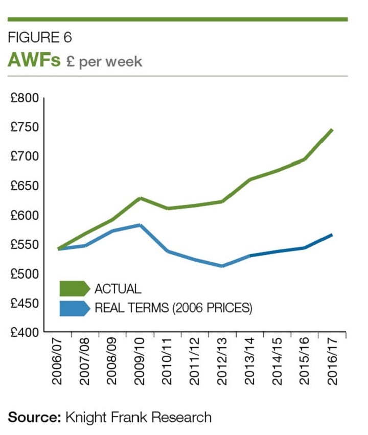 This is the sixth consecutive year of growth and represents a record high. In real terms, AWF rose to the equivalent of £566, which represents only a 4.4% increase since 2006.