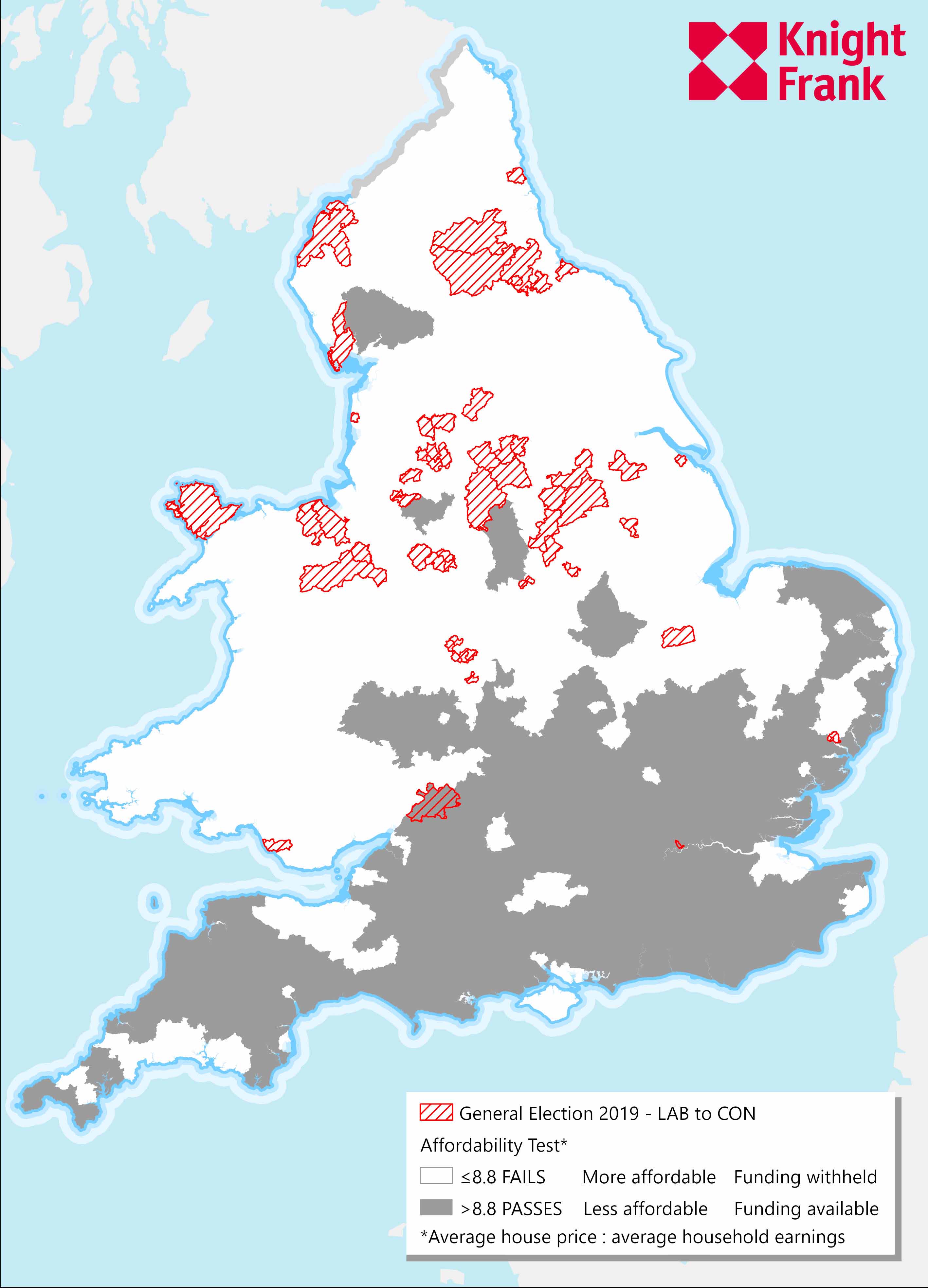 Charles Dugdale, a Partner in Knight Frank’s Development Consultancy team, said: “Due to the 80:20 rule, many places across the country have been refused gap funding – and the reality is that these are the areas that need the investment the most. Indeed, 33.5 million people - 57% of the country – live in areas that fail the affordability test.”