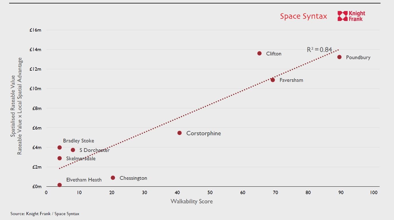 Furthermore, the research concludes that there is a close correlation between the walkability of an area and its value. This shows that, for a given settlement’s context, if designers plan for greater walkability, then they can expect to drive greater mixed-use value.