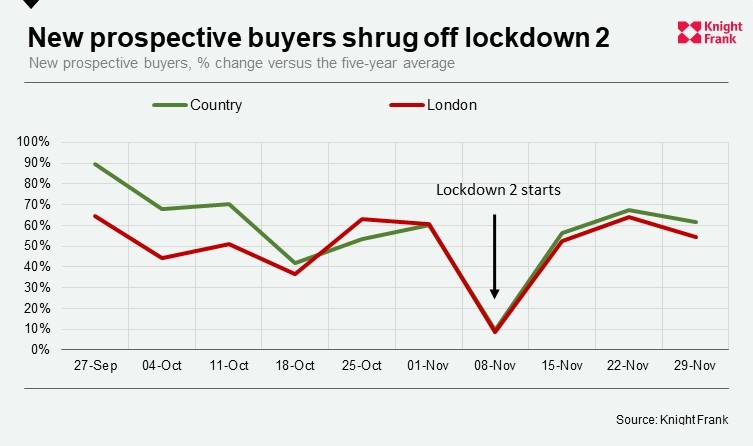 After an initial dip as the second national lockdown was announced (week ending 8 November), new prospective buyer numbers quickly rebounded. It indicates how a certain level of resilience has built in relation to the pandemic, which will continue to underpin demand.
