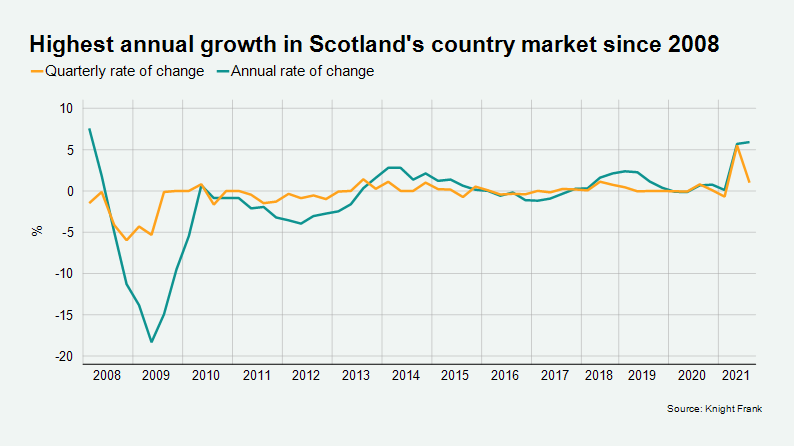 The latest quarterly increase took the annual rate of growth to 5.9% in the 12 months to September, which is the strongest performance since 2008 in what has been a transformational period for Scotland’s country market.