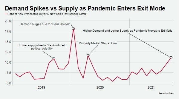 The high-point came in January 2020 during the so-called Boris Bounce following the December 2019 general election, when demand surged. The market shutdown three months later produced a similar distortive effect as vendors retreated.