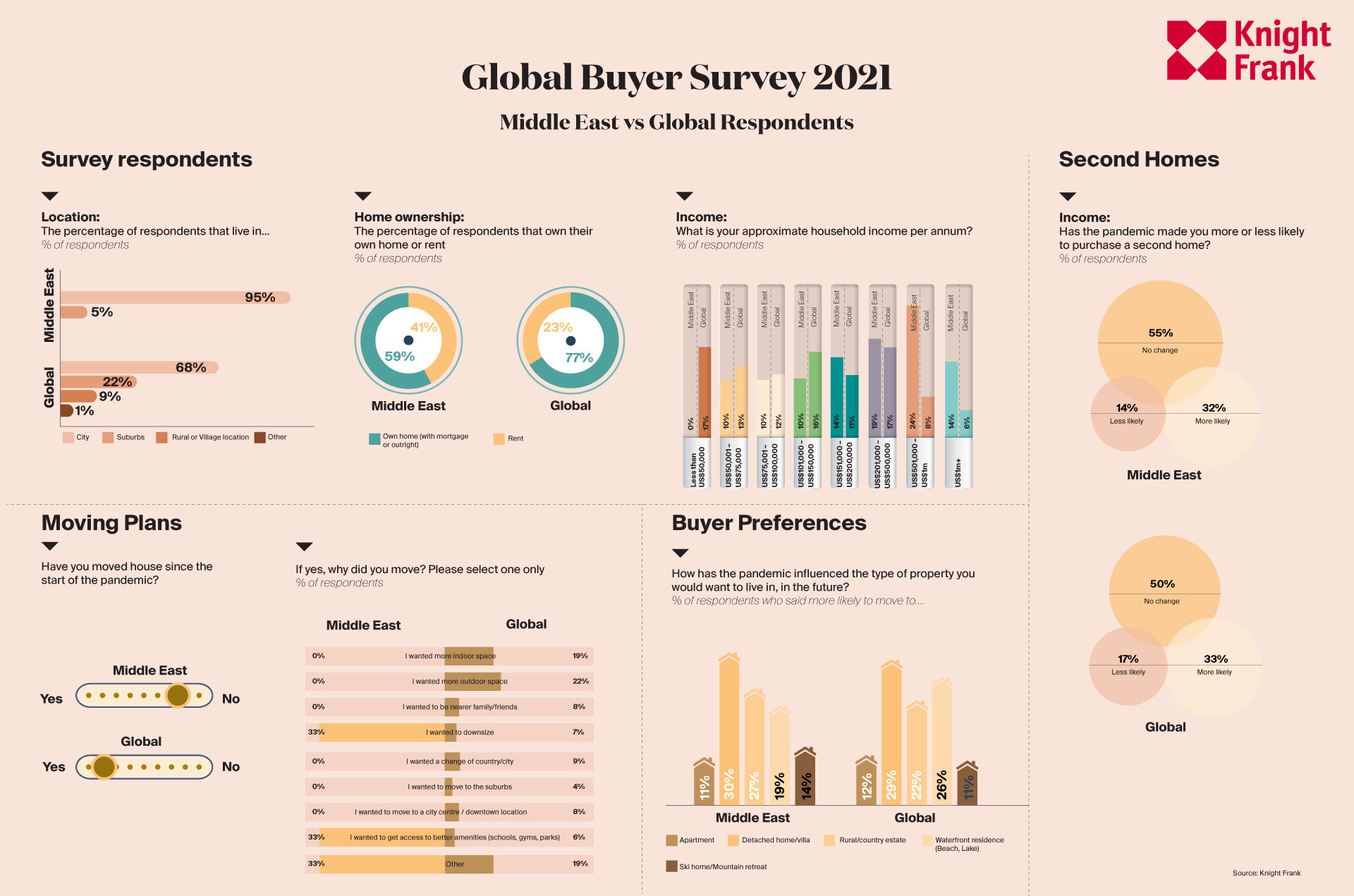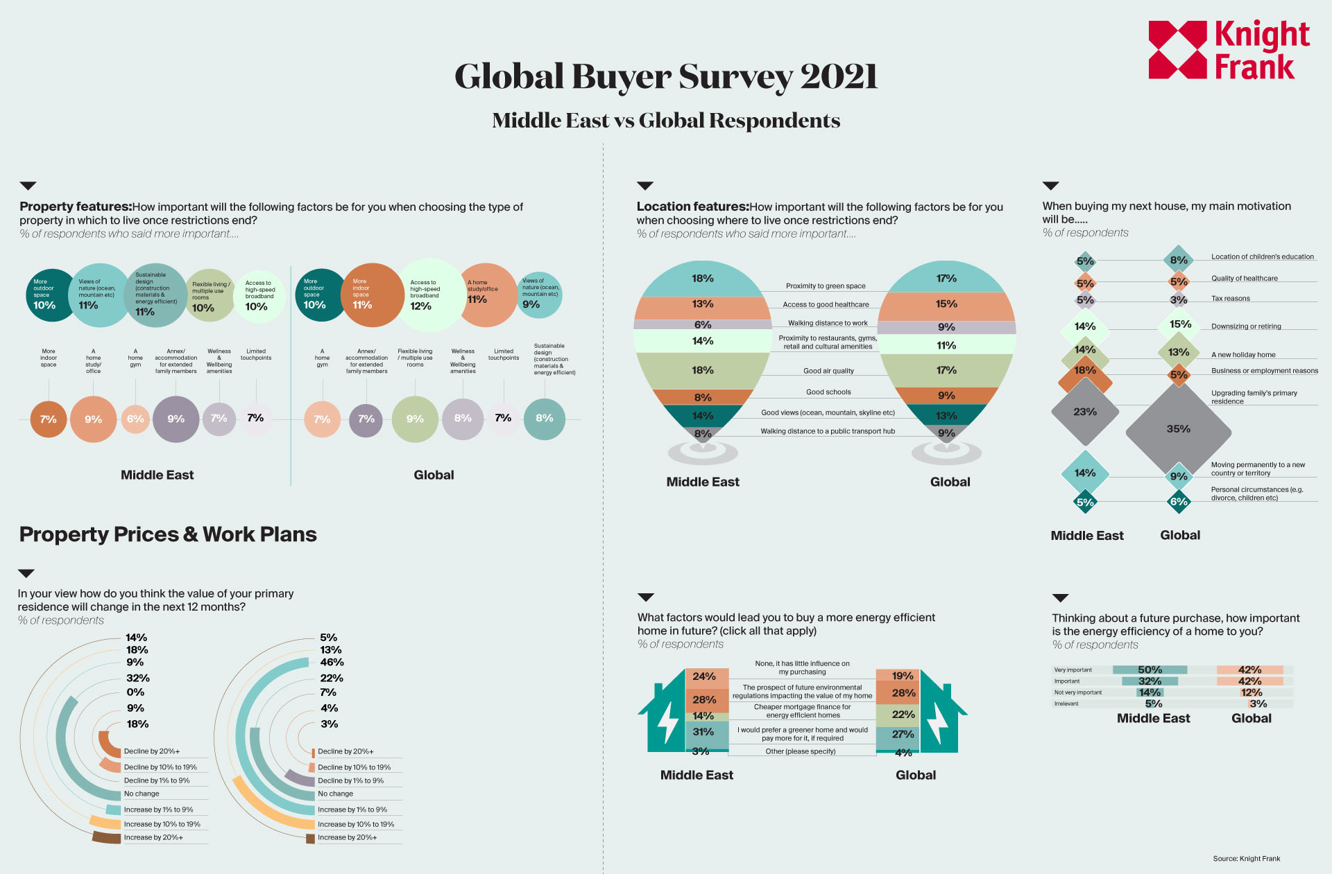 The coronavirus pandemic has driven a shift in attitudes amongst Middle East home buyers, according to the 2021 Knight Frank Global Buyer Survey. The survey represents the views of over 900 Knight Frank clients across 49 key global markets.