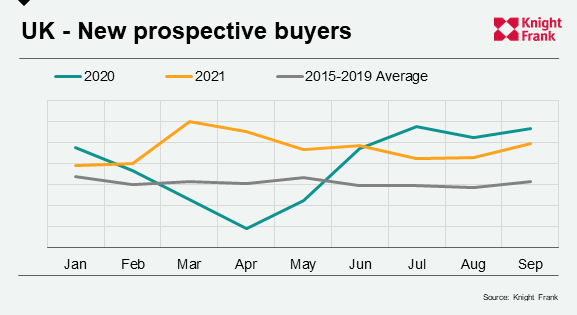 Demand has not been a problem since the UK property market re-opened in May 2020. The number of new prospective buyers in September was 57% above the five-year average between 2015 and 2019. In fact, the figure was only 13% below last September’s figure, two months into a stamp duty holiday and during a period of post-lockdown exuberance.