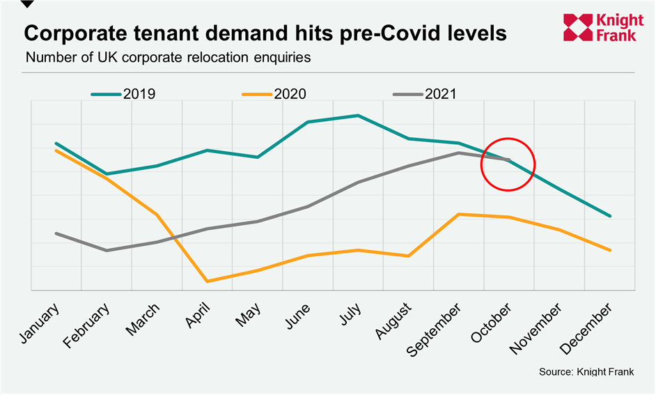 Here’s one from the residential property sector: October was the month that demand from companies looking to relocate staff to the UK returned to pre-Covid levels.