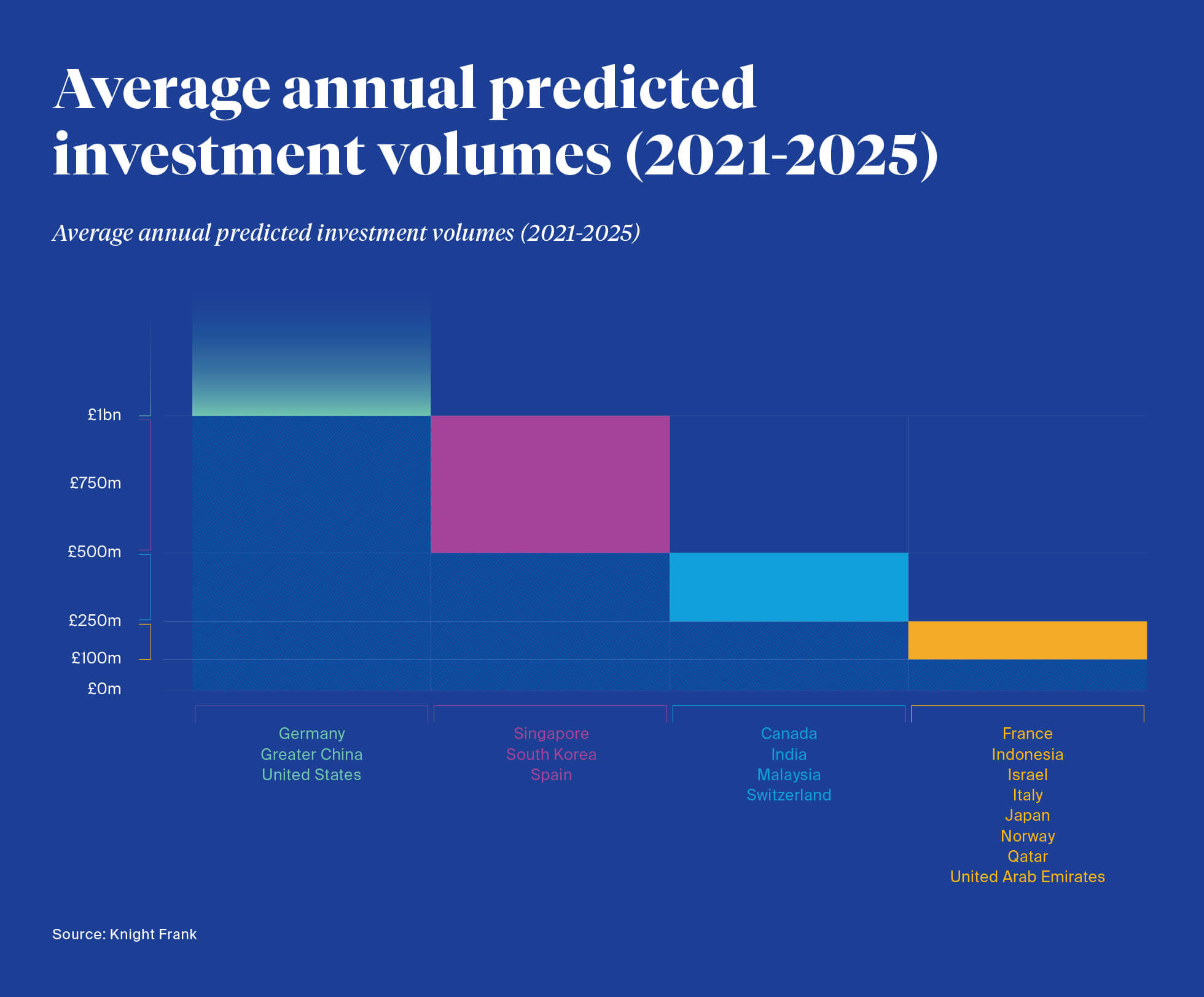 Over the longer term (2021–2025) we forecast for Spain and South Korea to increase their investment into London further, with the potential of up to £1 billion per annum on average forecast between 2021 and 2025.