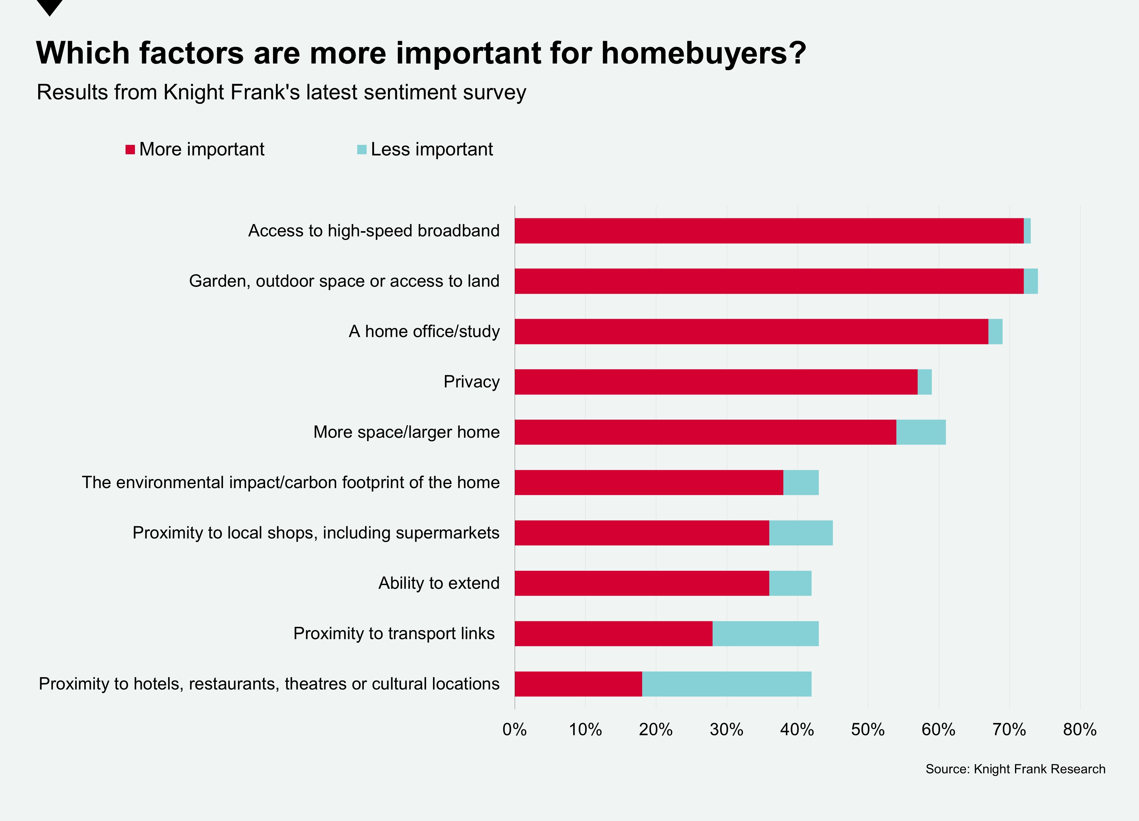 Some 40% of respondents to Knight Frank’s latest sentiment survey said the environmental impact and carbon footprint of a home was more important following the latest lockdown, with only 5% of respondents saying it was less important and just over half selecting 'no change'.