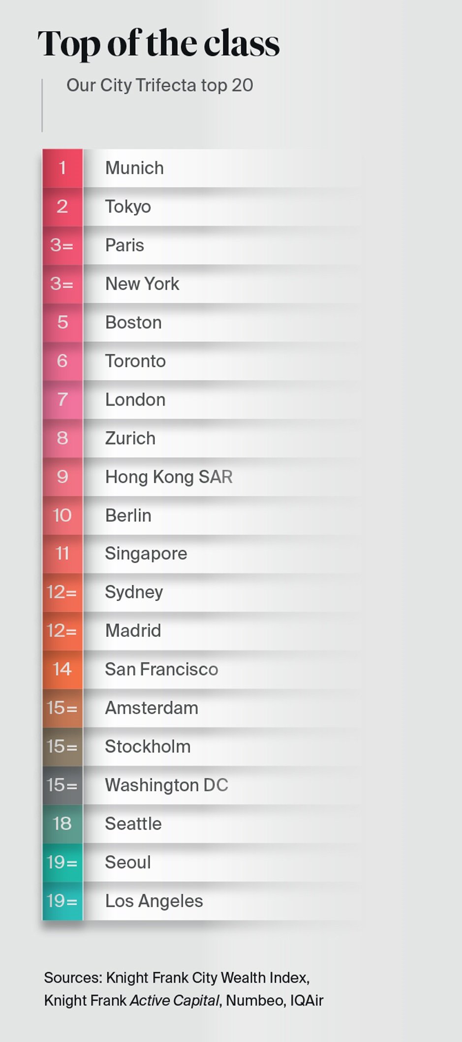 - Munich takes top spot in the Trifecta, compared with ninth place in the City Wealth Index