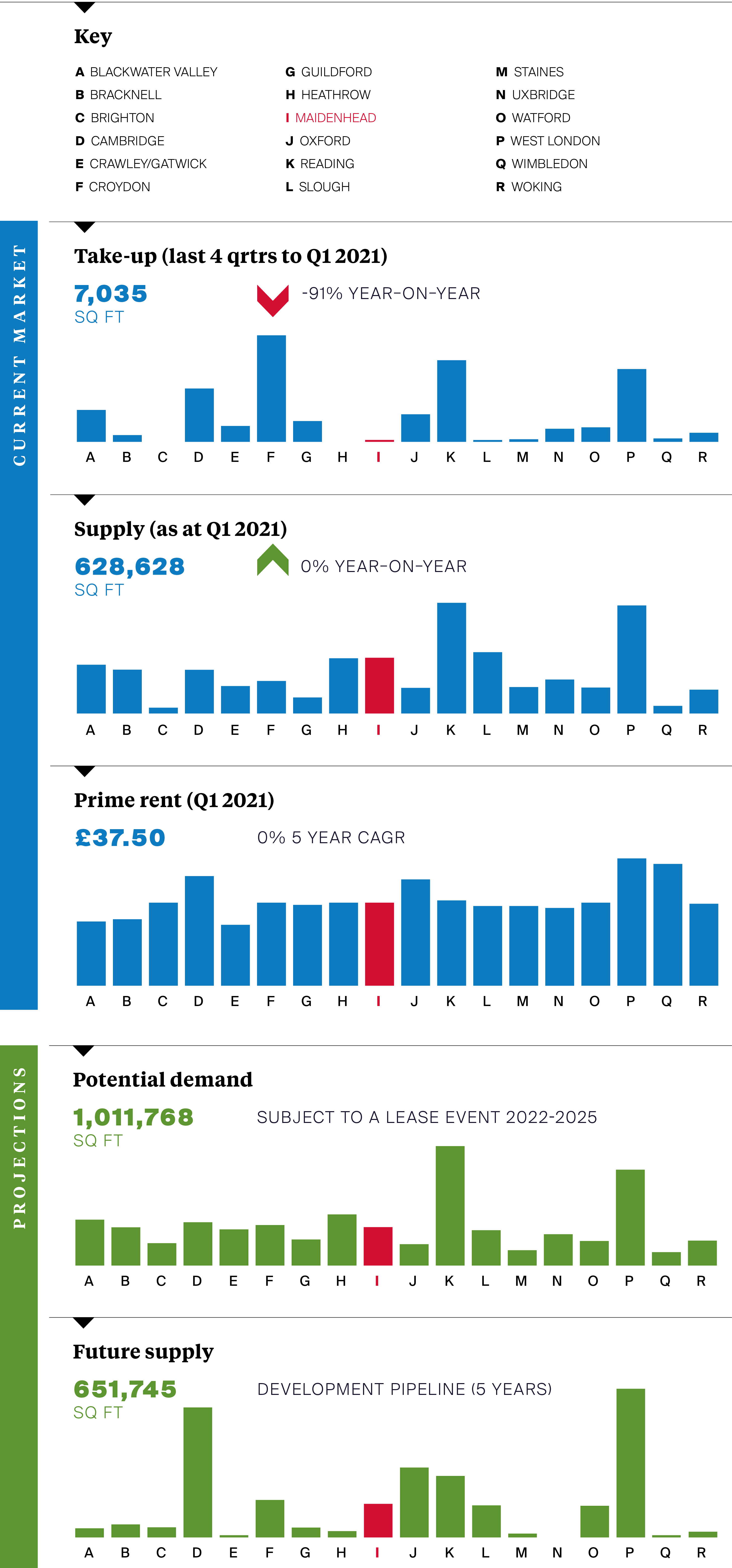 The arrival of Crossrail to Maidenhead will help to further establish Maidenhead town centre as a direct rival to its more established neighbour in Reading. As a central point in the Thames Valley, with an educated and affluent surrounding population, Maidenhead has historically punched below its weight.