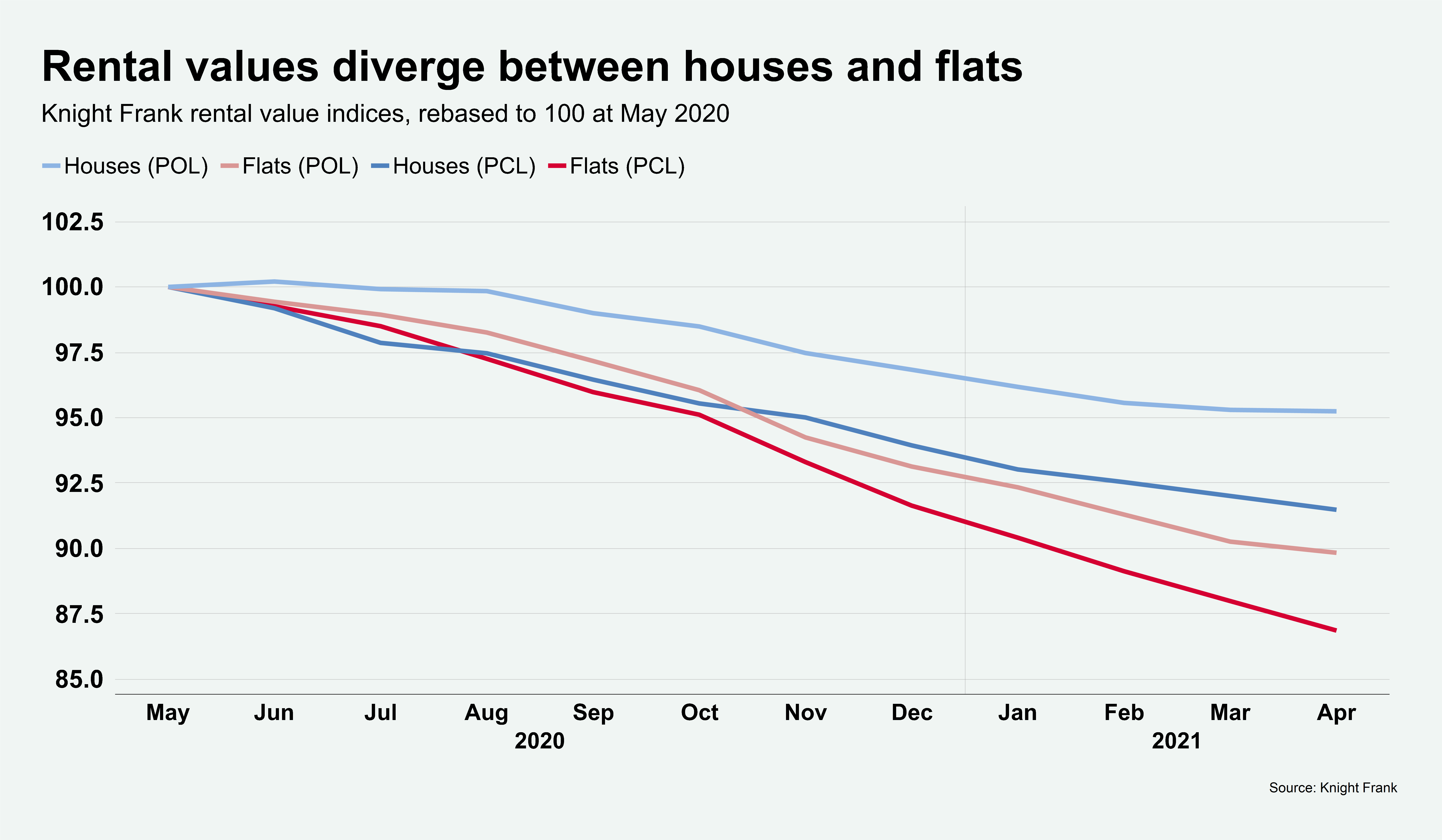 Demand has been curtailed due to international travel restrictions and supply driven higher by the transfer of short-term rental properties onto the long-let market.
