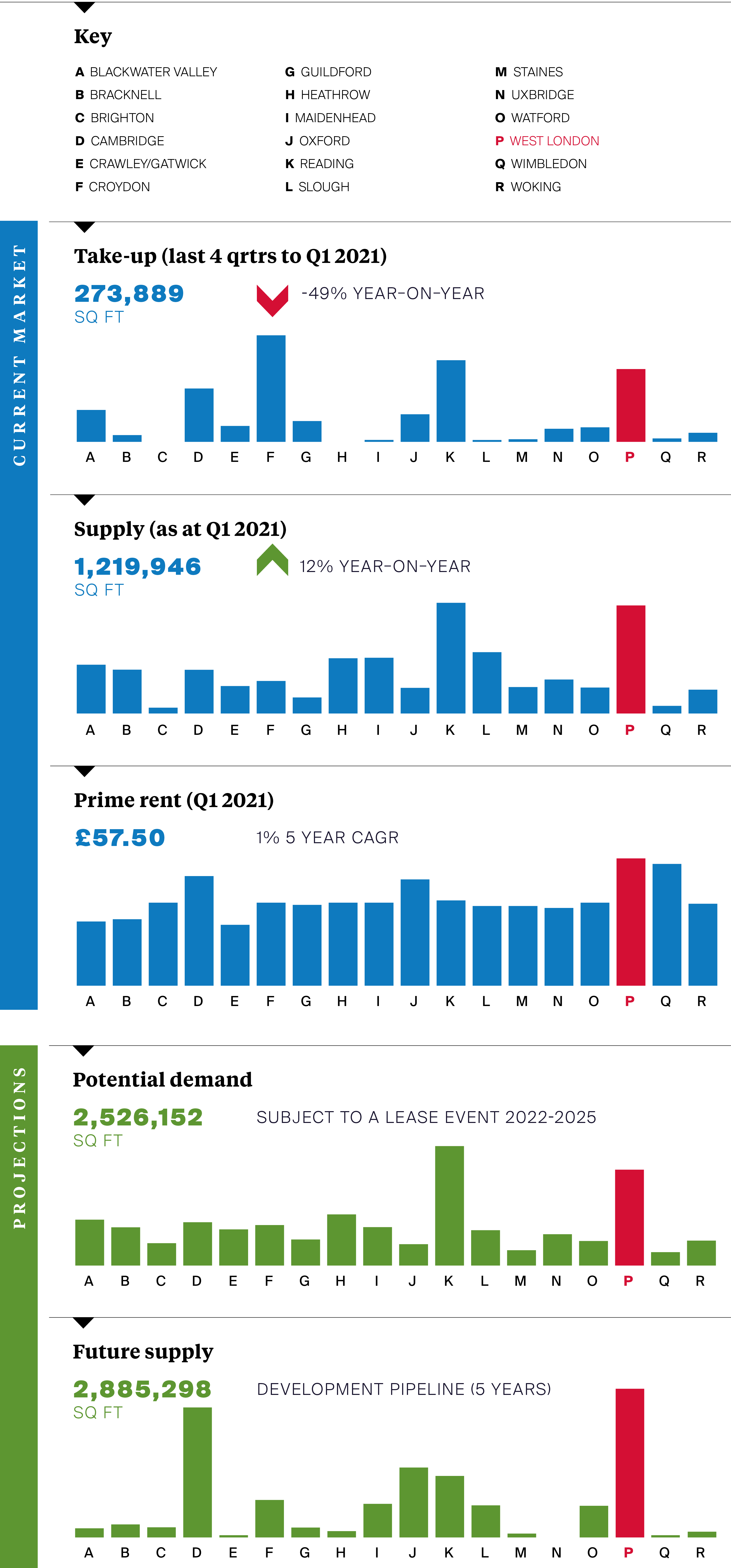 The west London markets have continued to benefit from the ever-expanding London markets. Occupiers searching for space that can offer large open plan floorplates at a more affordable occupational cost has created more activity in sub-market movement.