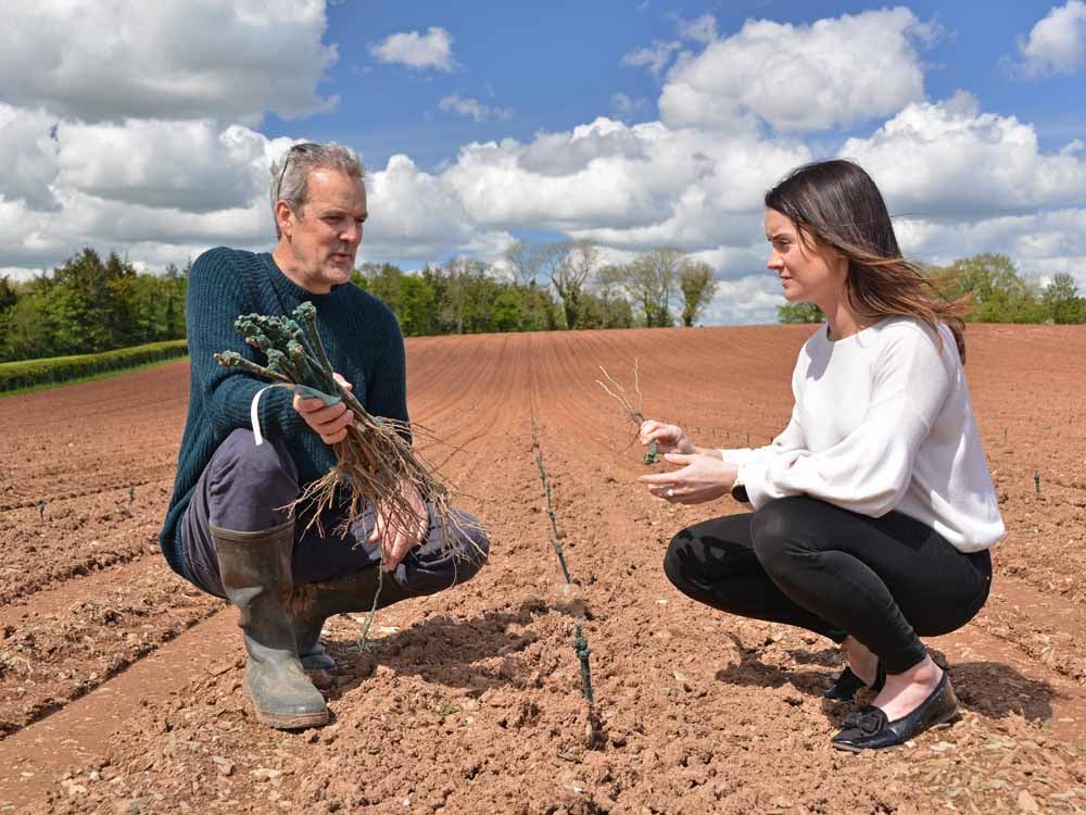 Above: Knight Frank's Elin Jones and head winemaker Duncan Schwab survey the newly planted vineyard at Sandridge Barton.