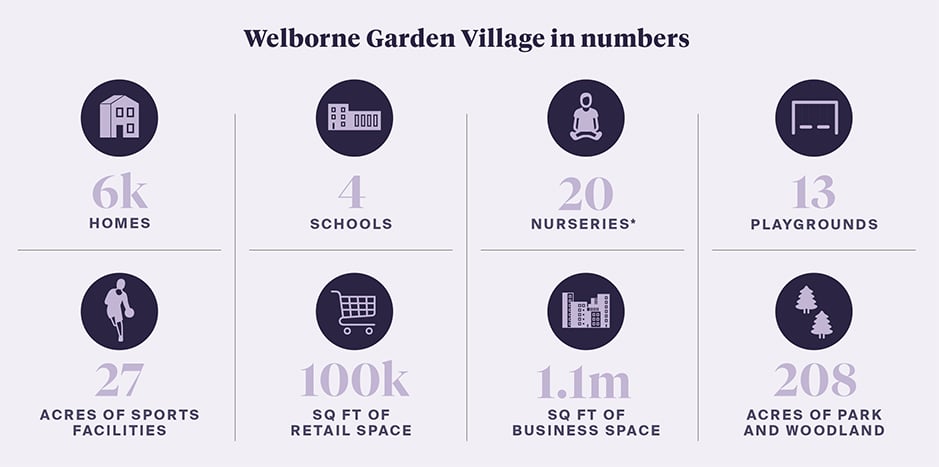 There’s a lot to like in Welborne as a result. Once complete, it will be home to three primary schools, one secondary school, 20 nurseries, 13 playgrounds, 27 acres of sports facilities, 100,000 sq ft of retail space, 1.1 million sq ft of business space and 208 hectares of park and woodland.