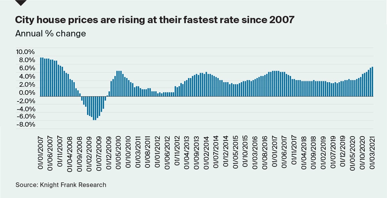 Urban house prices are rising at their fastest rate since 2007 and of the 150 cities we track, 43 are now registering annual price growth above 10%.