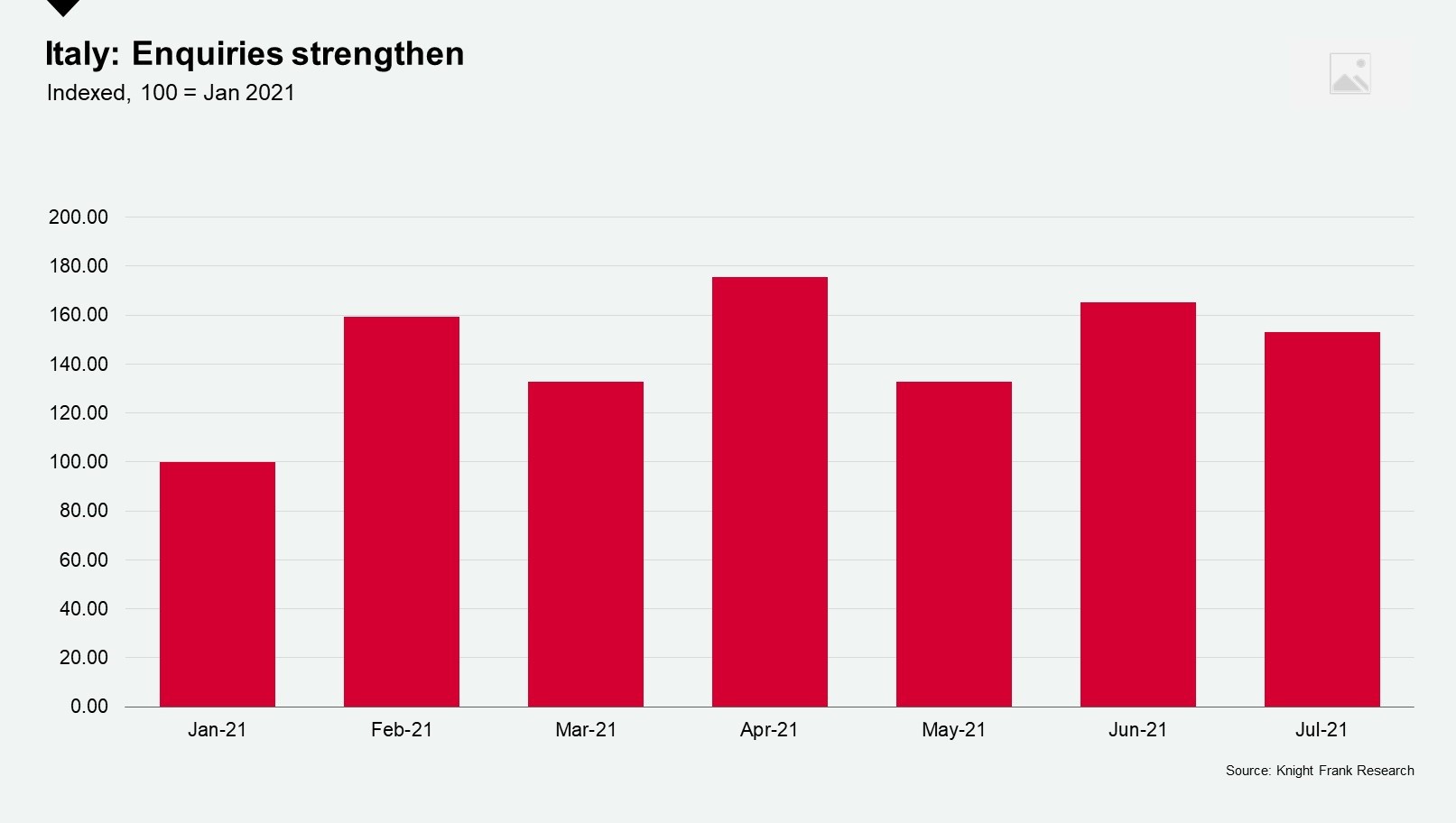 Between January and April 2021, Knight Frank enquiries for homes in Italy increased 76% and have remained consistently high.