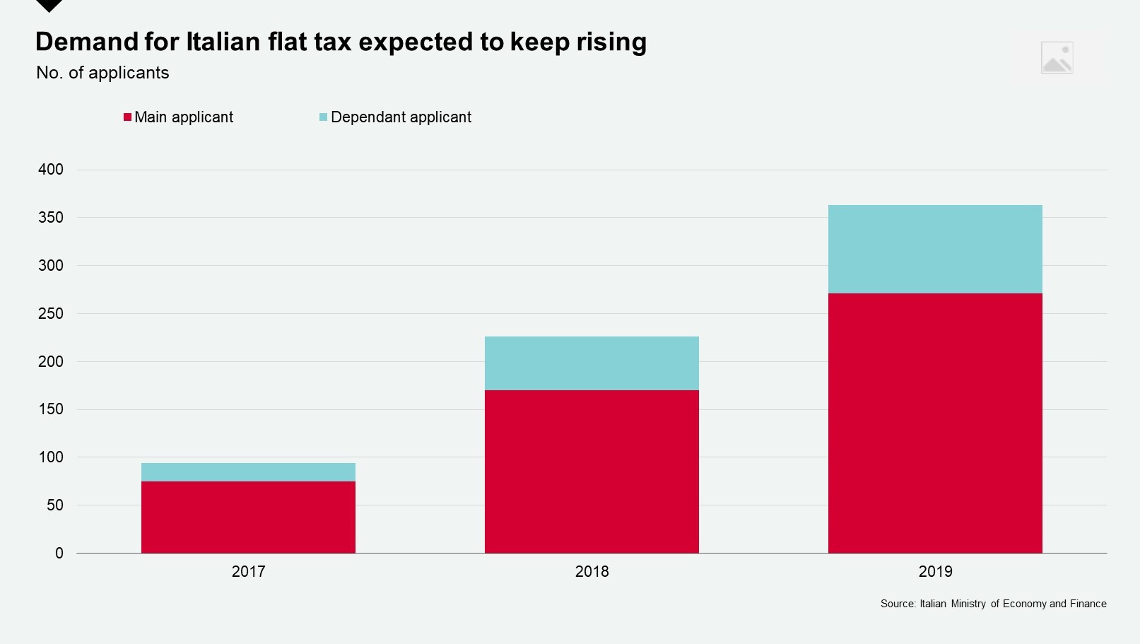 Between 2017 and 2019, some 683 UHNWIs have applied for residency via Italy’s flat tax scheme, with a 61% jump recorded in 2019 year-on-year.