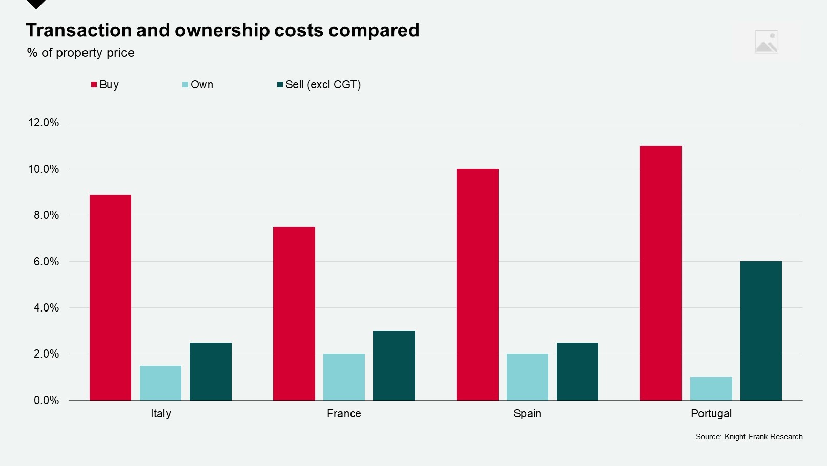 European taxes are relatively low compared to other parts of the world and Italy compares favourably, particularly in relation to ownership costs, which can be as low as 1.5% of the purchase price per annum.