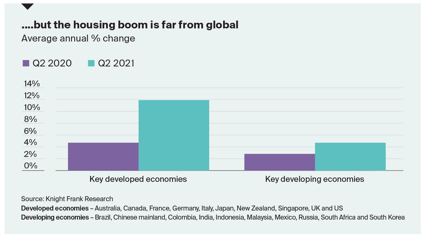 The pandemic-induced housing boom continues with prices rising by 9.2% on average across 55 countries and territories in the year to June 2021.