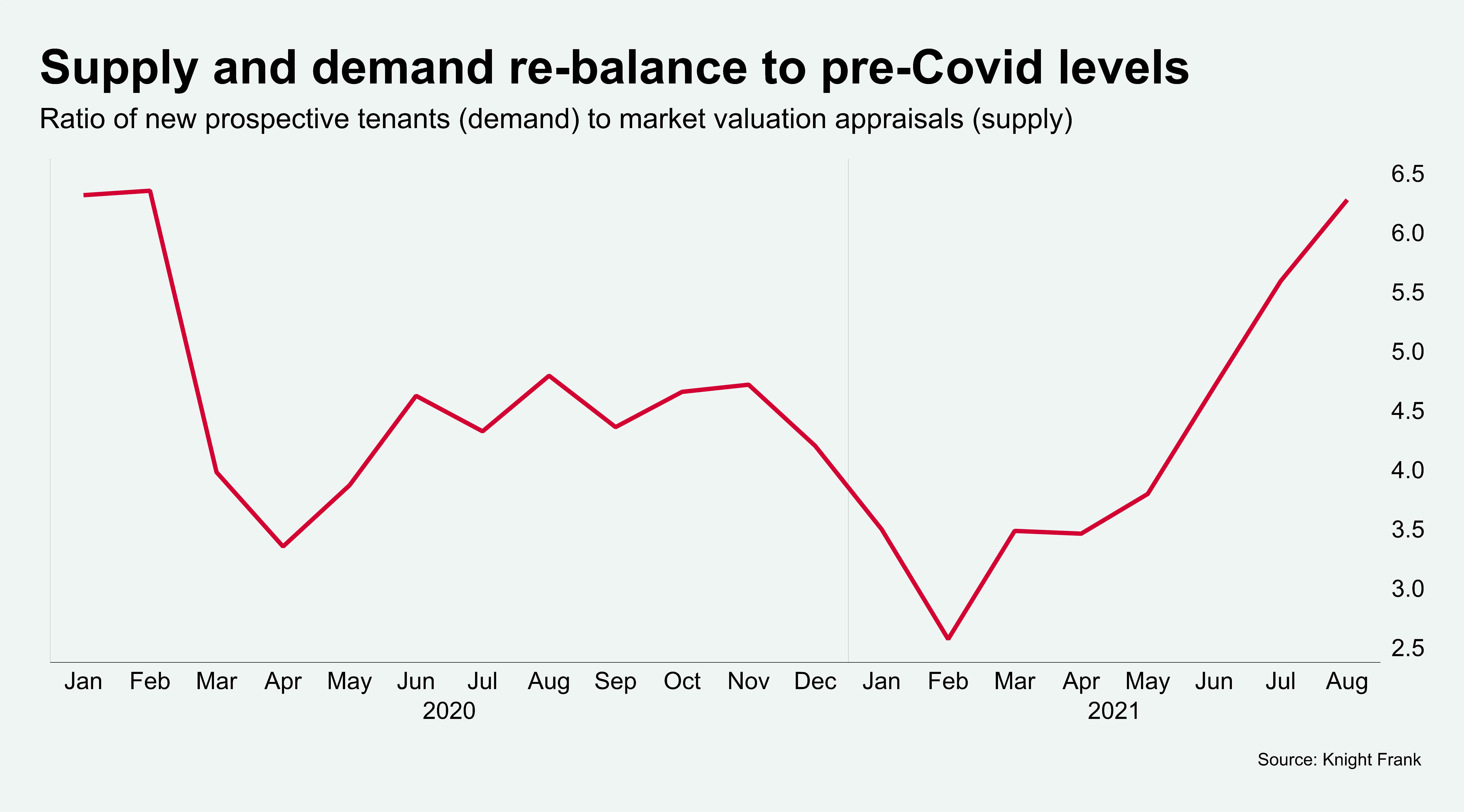 As supply and demand re-balance, it has put upwards pressure on rental values, which had fallen steeply in some areas during the initial months of the pandemic.