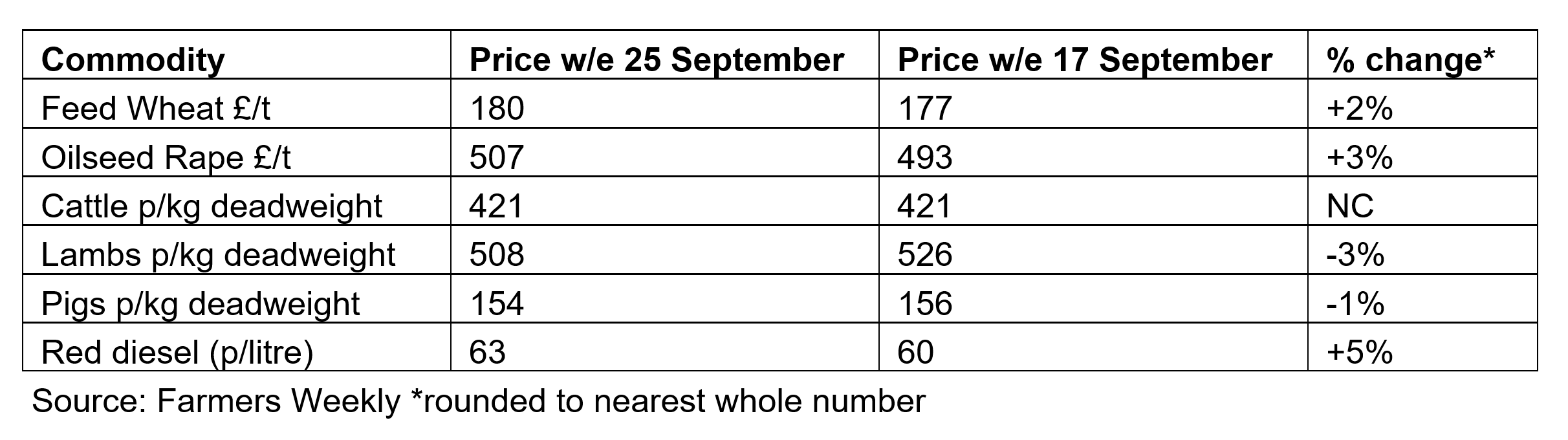 As predicted last week oilseed rape is back over 500p/kg again, but given the flea-beetle affected crop’s limited contribution to this year’s harvest, rising fuel and fertiliser costs will be of more interest to the majority of arable farmers. Red diesel costs are up sharply on the week, while ammonium nitrate (AN) fertiliser values have risen by as much as £40/tonne off the back of surging gas prices.