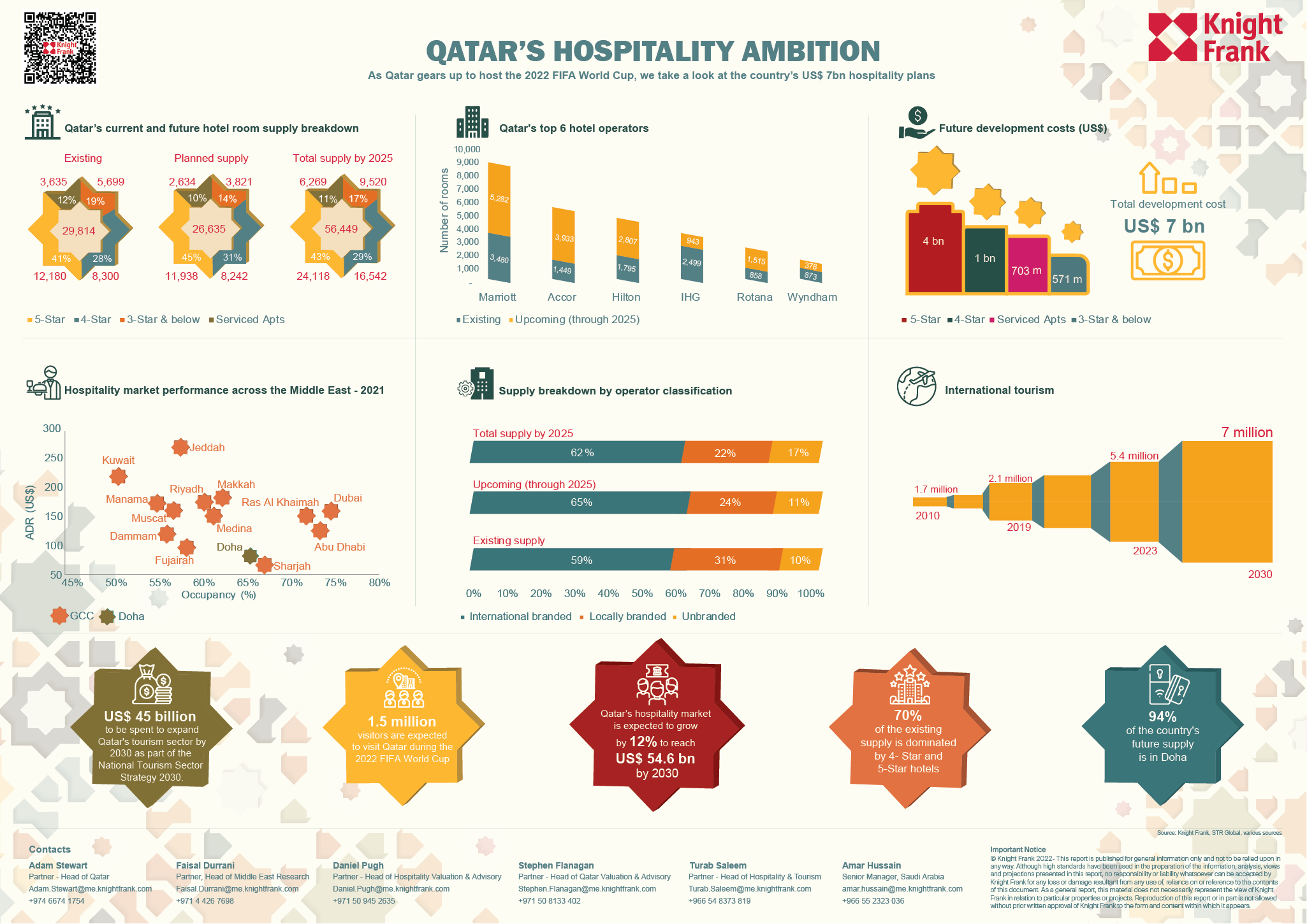 Qatar could see its hospitality market grow by 89% to over 56,000 hotel keys by 2025, according to research carried out by global property consultancy firm, Knight Frank, with the delivery of the planned hotel room supply forecast to cost approximately US$ 7bn.