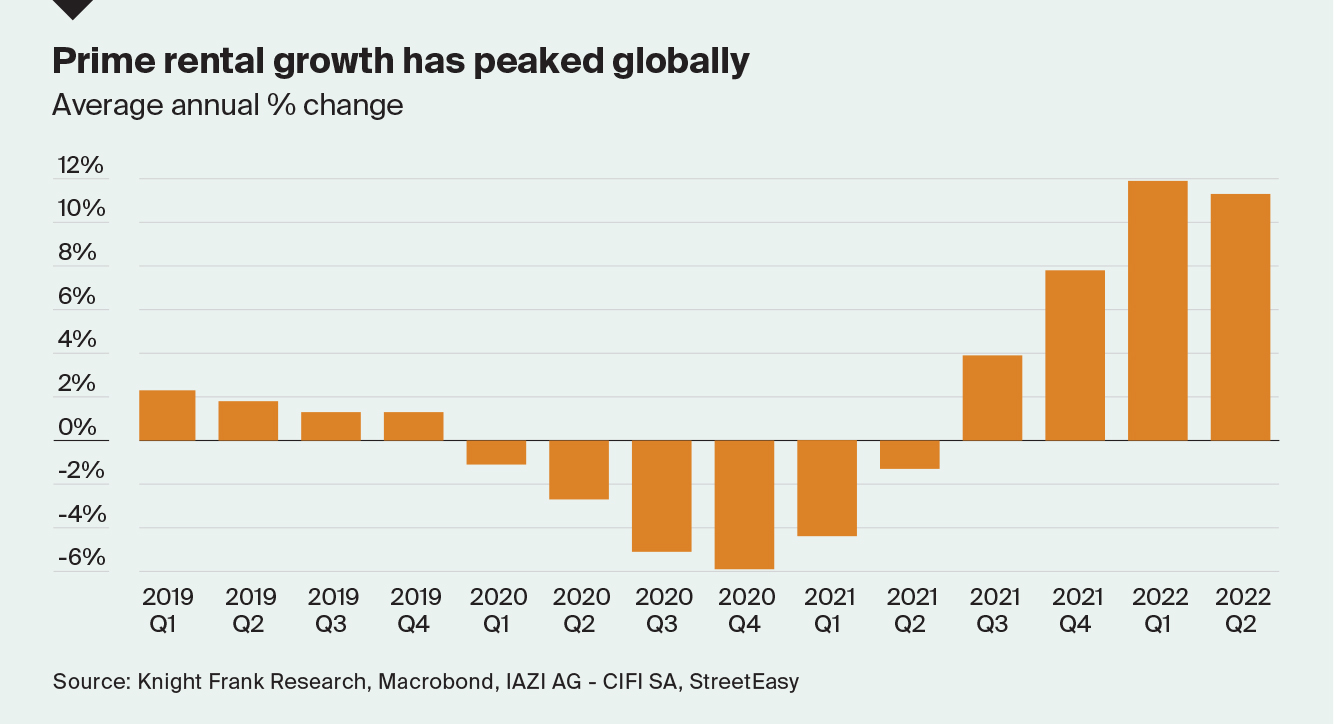 Growth in prime global rental markets appears to have peaked following months of rapid gains fuelled by a substantial imbalance of supply relative to demand.