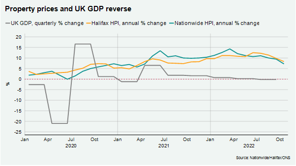 Halifax recorded the sharpest decline in house prices since February 2021 with a fall of 0.4% in October. This saw the rate of annual growth ease, from +9.8% in September to +8.3% last month.