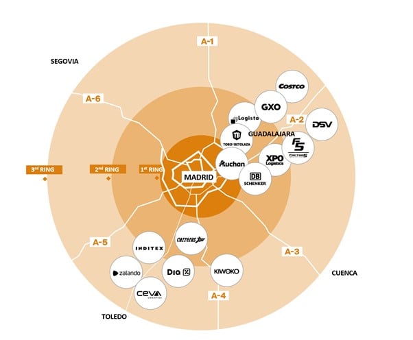 The Madrid logistics market, mainly groups together areas belonging to the provinces of Madrid, Guadalajara and Toledo, is established as the core of e-commerce from where merchandise can be shipped to any area of the peninsula in less than 24 hours.