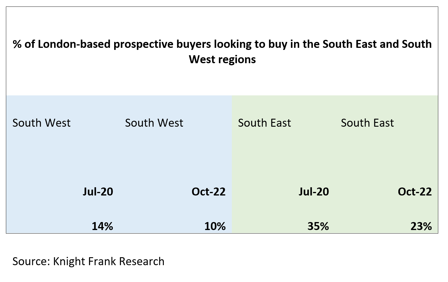 While the South West region saw a surge in interest after the first UK lockdown, attracting many Londoners to make a lifestyle change, demand has returned to levels similar to before the pandemic (see table).
