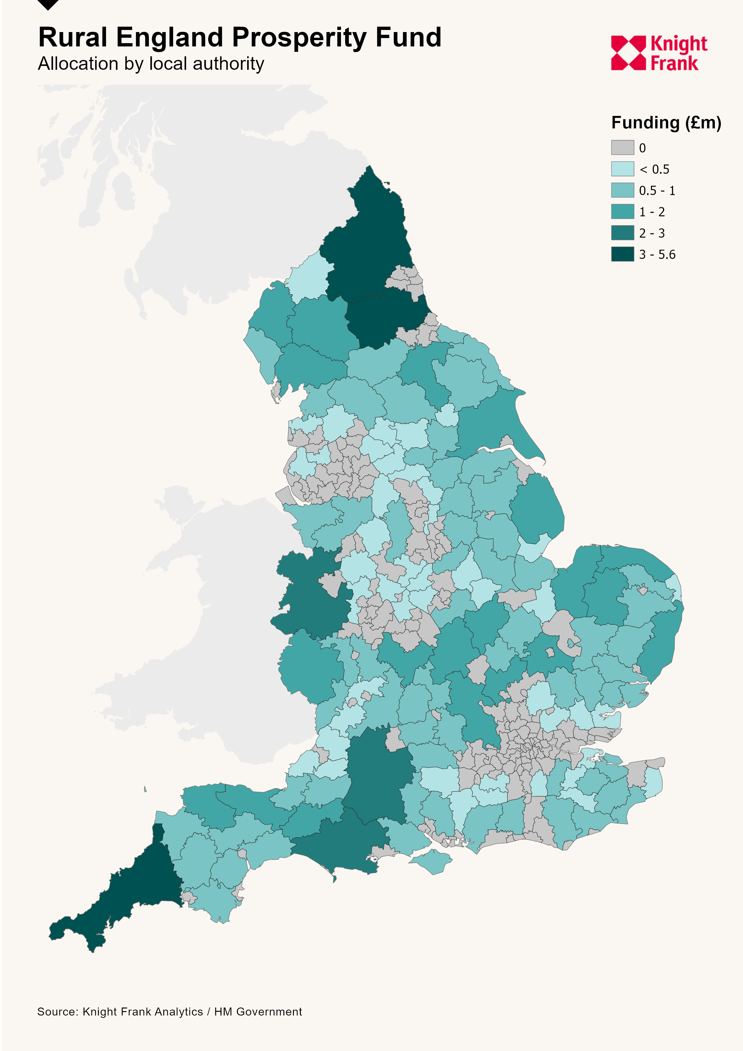 Knight Frank has mapped which parts of the UK will receive most support from a new rural grant