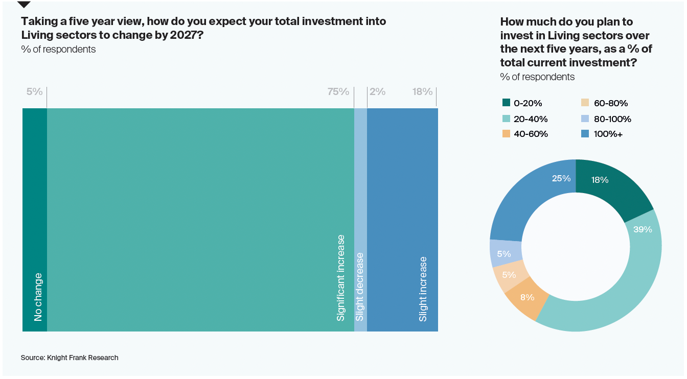 The results suggest that investors remain bullish despite current volatility. Three quarters of respondents said they plan to “significantly increase” their total investment into European Living markets over the coming five years (see chart). A quarter said that this would represent a doubling of existing investment levels.