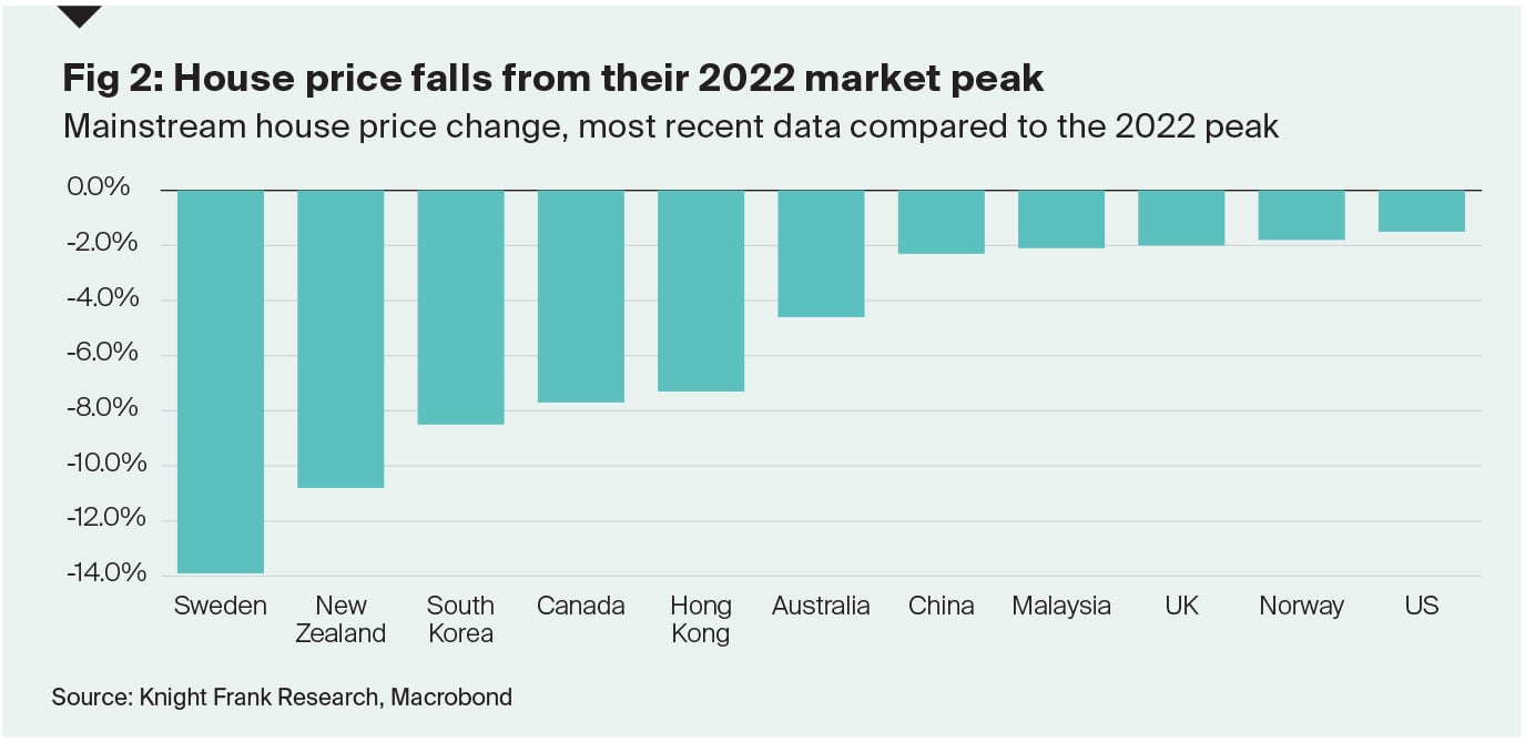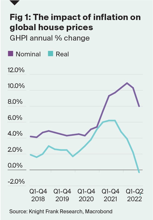 House prices across 56 countries and territories are still rising at a rate of 8.8% per annum, down from 10.9% at their peak in Q1 2022.