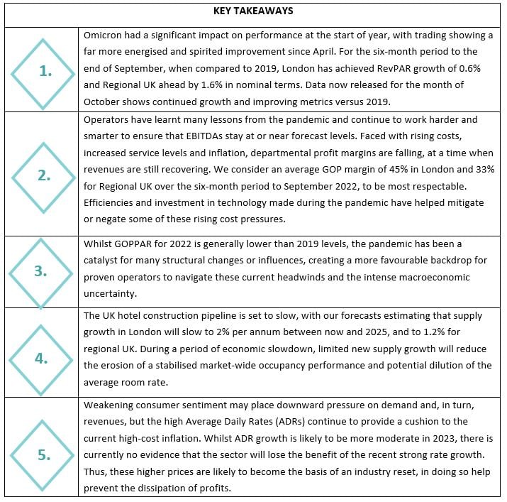 In addition, we provide our forecasts and outlook for 2023, to facilitate planning and strategic decision making, at a time where the UK hotel sector endures a further sustained period of challenging market conditions.