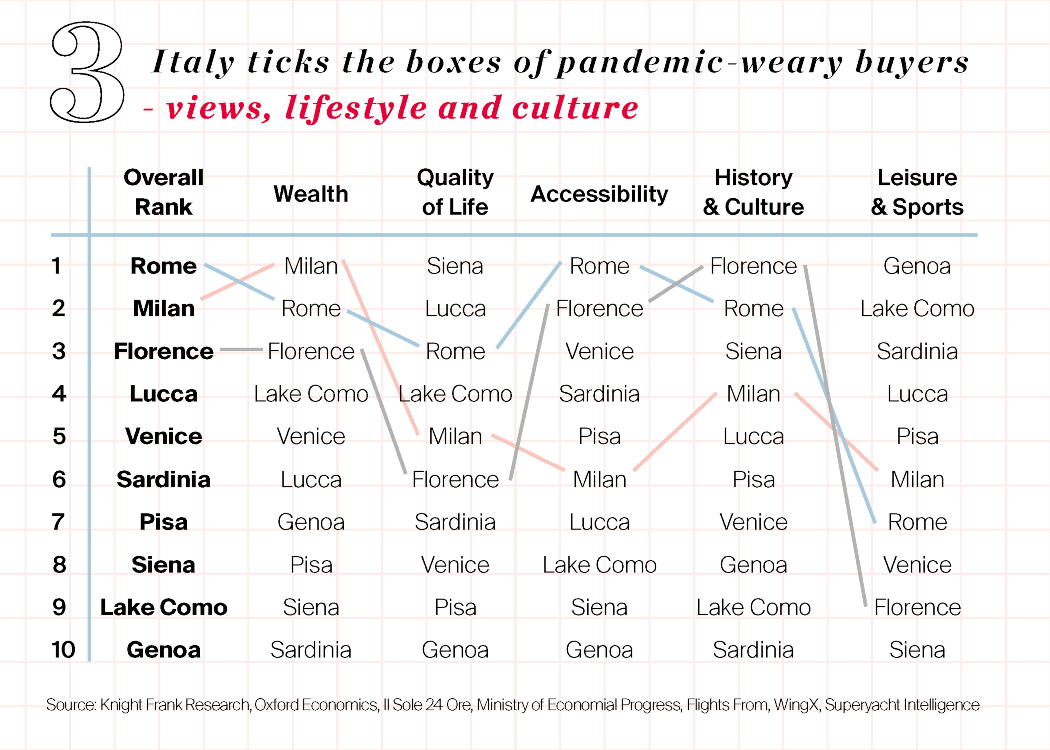 Knight Frank’s Global Buyer Survey confirmed Italy was the fifth most popular global destination for international buyers considering purchasing a second home. The pandemic has shone a spotlight on outdoor living, the importance of health and wellbeing, time with family and friends as well as the benefit of reconnecting with nature, all key elements of an Italian lifestyle.