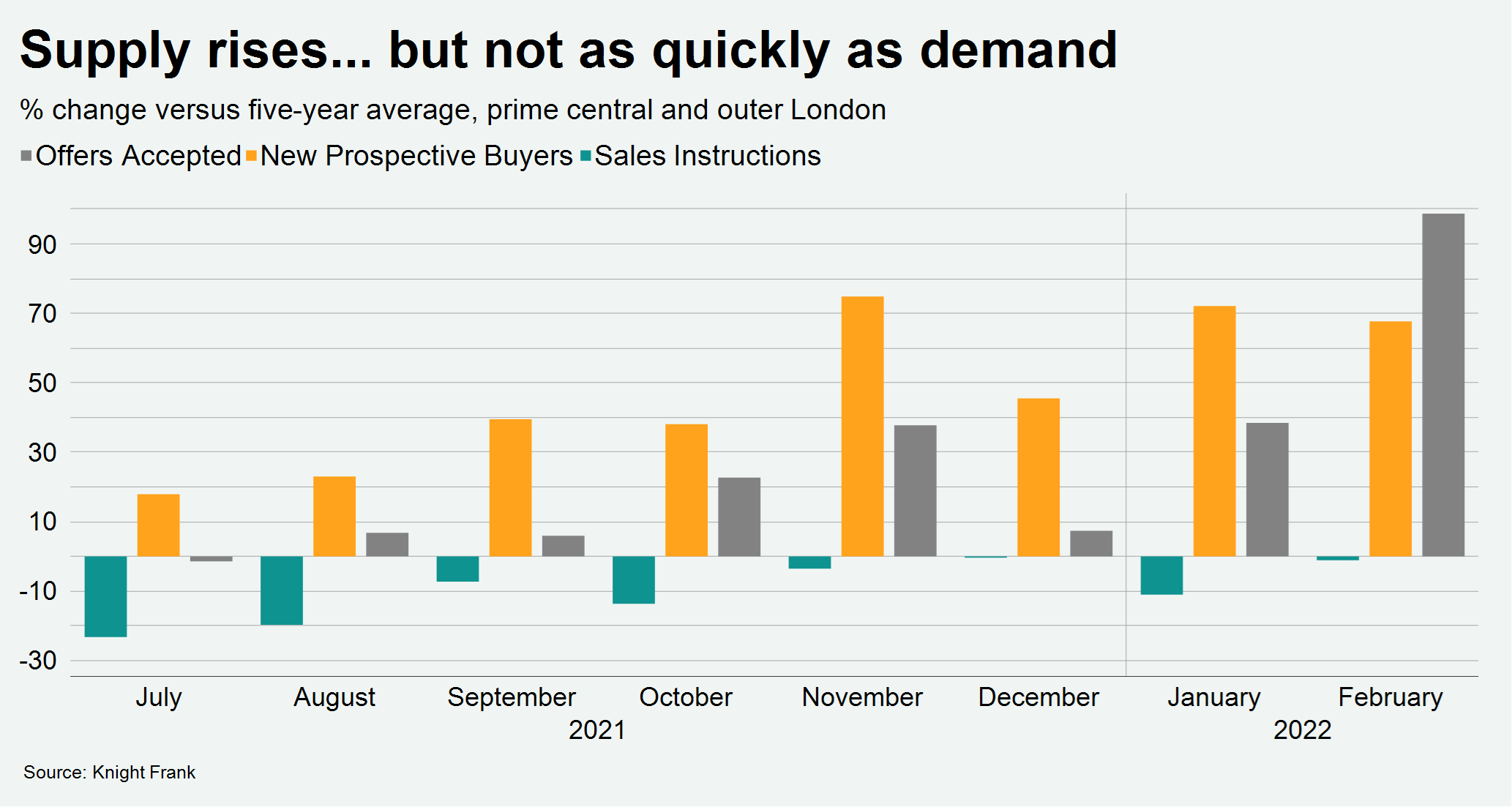 Meanwhile, the number of offers accepted in February was 99% higher than the five-year average, underlining the strength of the sales pipeline in the capital.