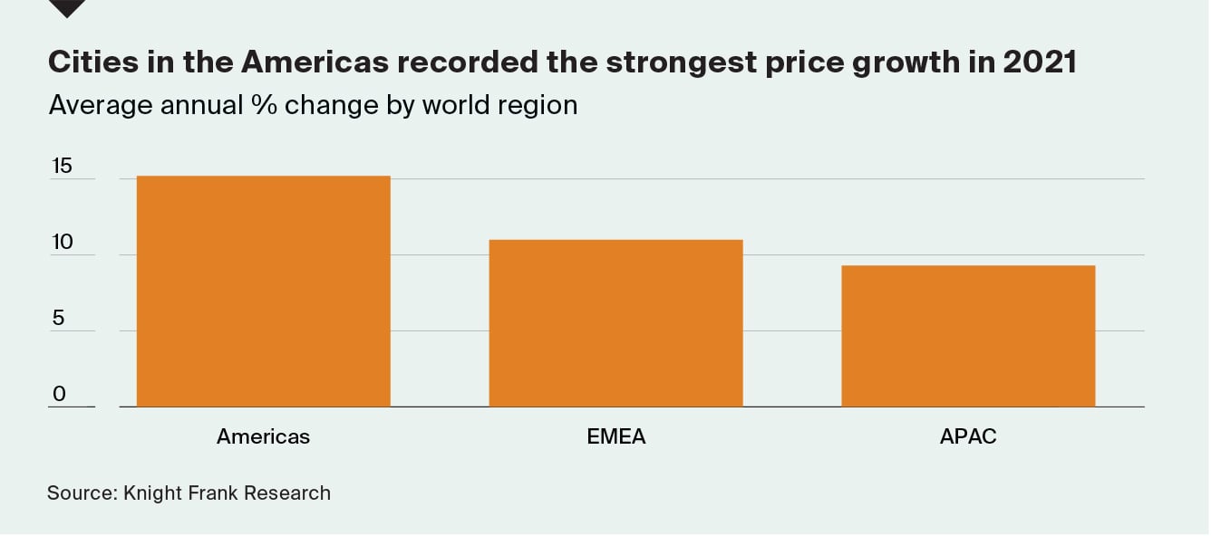 Of the 150 cities tracked by the index worldwide, 140 saw prices increase in 2021, up from 122 in 2020.