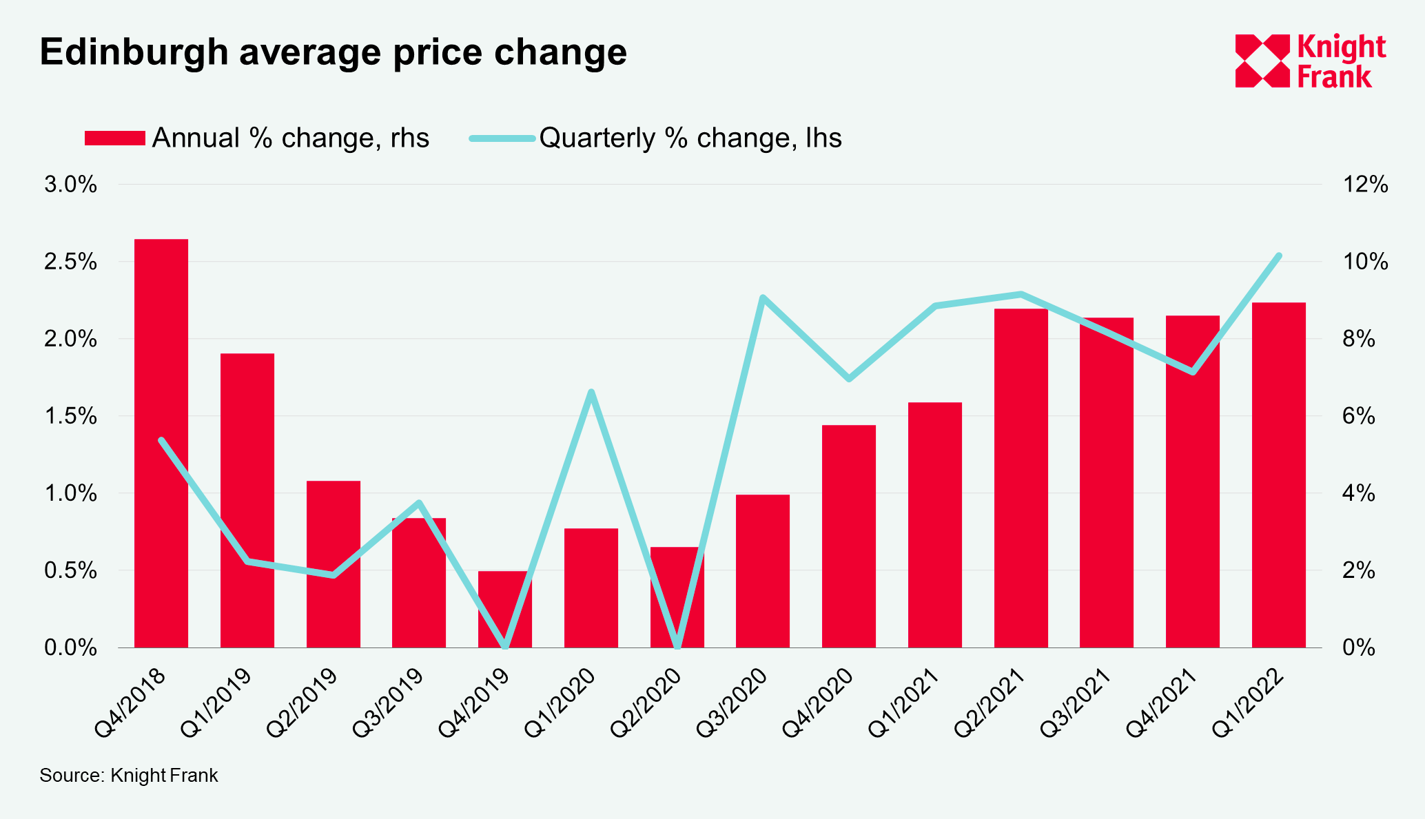Annual house price growth in Edinburgh hit 8.9% in March, the strongest rate since the end of 2018, according to the latest data from Chris Druce.