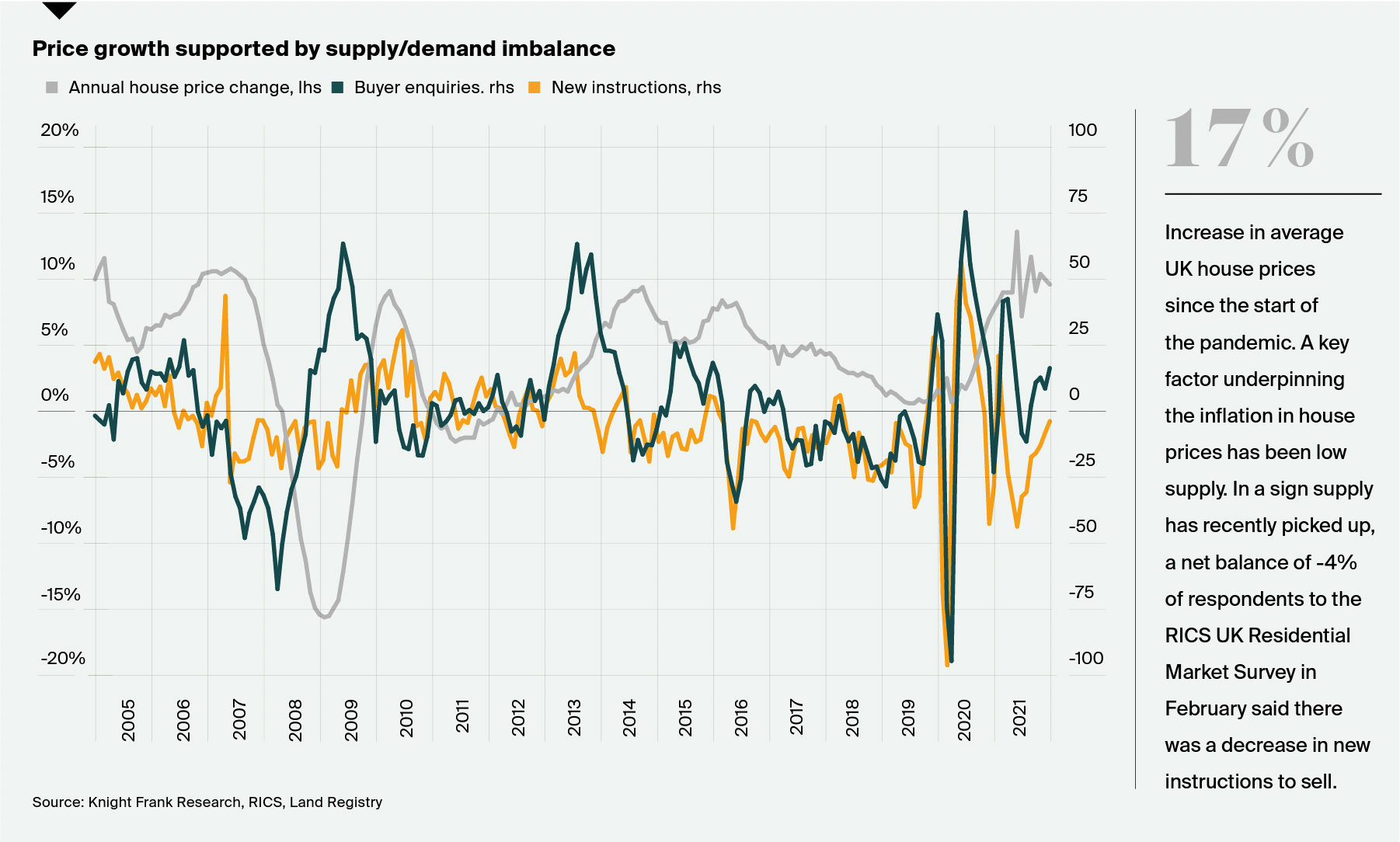 Pricing momentum is being underpinned by the shortage of supply. We expect that to correct as the distortive effects of the pandemic continue to fade and there are already some signs that supply will soon improve (see chart).