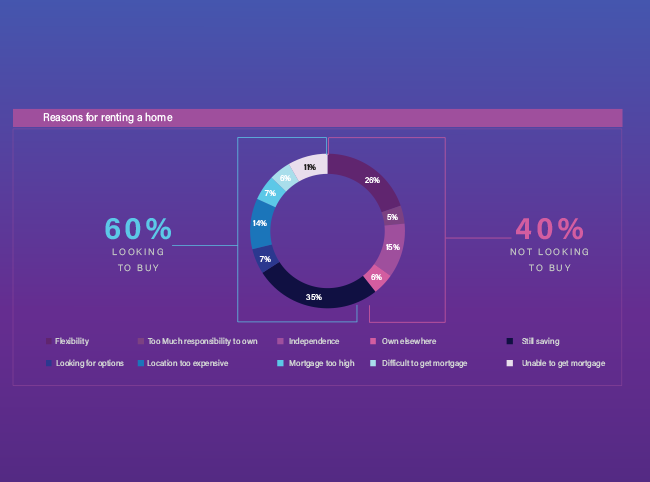 Interestingly, 60% of tenants who would buy are hamstrung by the need to continue saving for a deposit (35%), while others claim prices are too high for what they would like (24%) and 6% say they are actively trying to find suitable options.