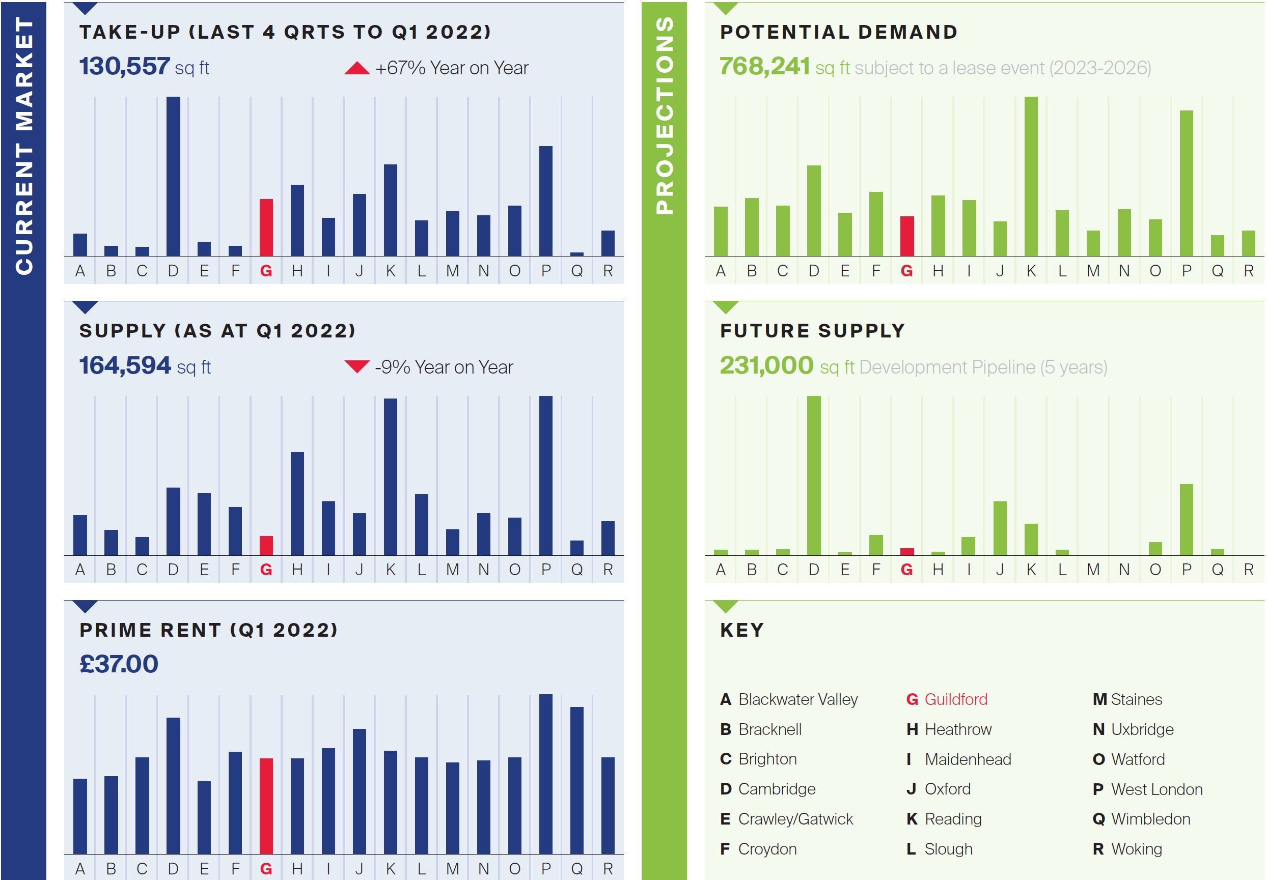 Branded “The Hollywood of Gaming” for years, occupier’s attraction to this market centres around software giant EA Sports and tech/science-led University of Surrey. The gaming sector is absorbing every square foot available within striking distance of the station, accounting for around 60-70% of all demand. With covenants now bolstered by buyouts and PE backing, landlords are gaining confidence to deliver product to this growing occupier group.